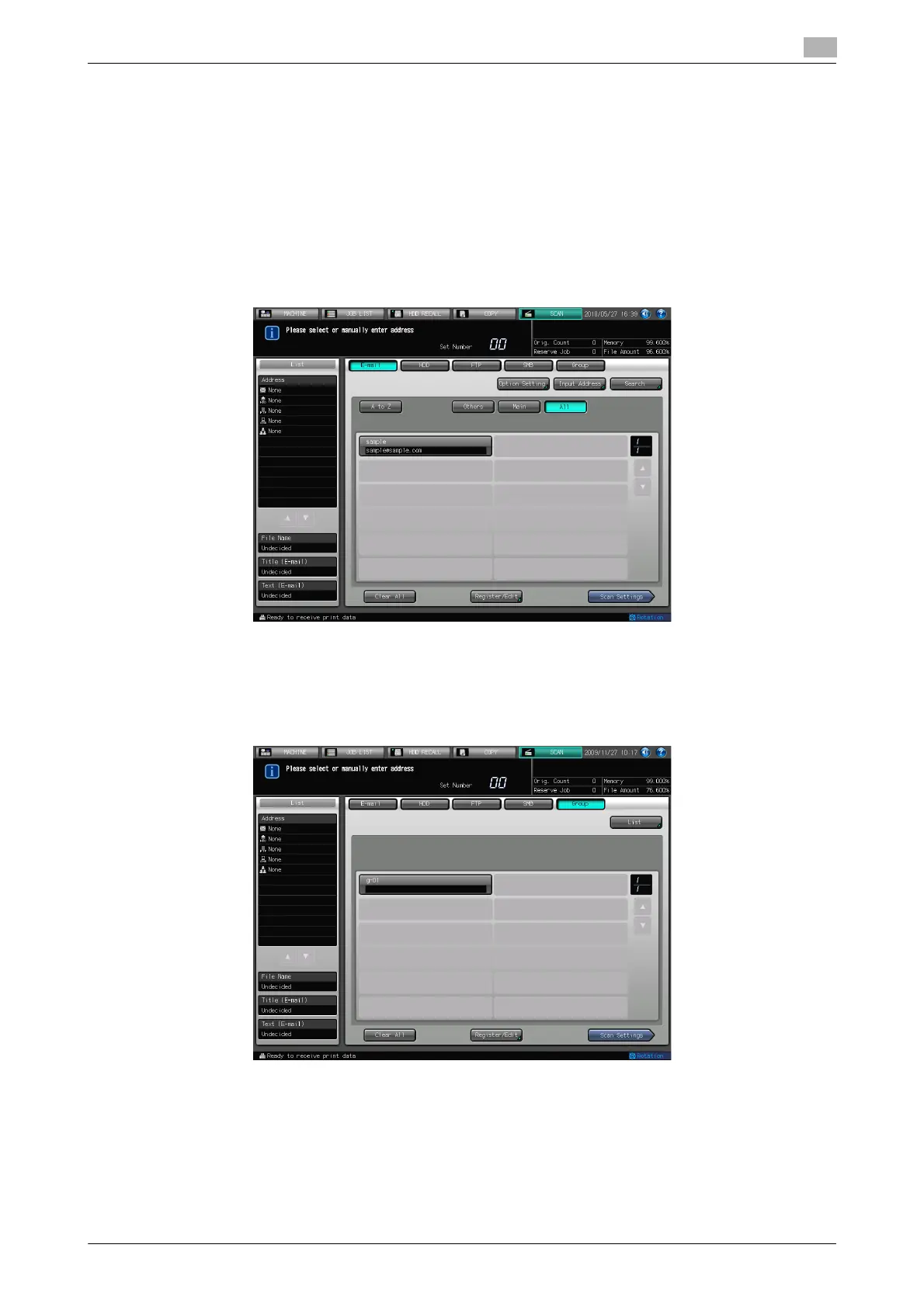0 At maximum, 50 addresses can be registered for each group.