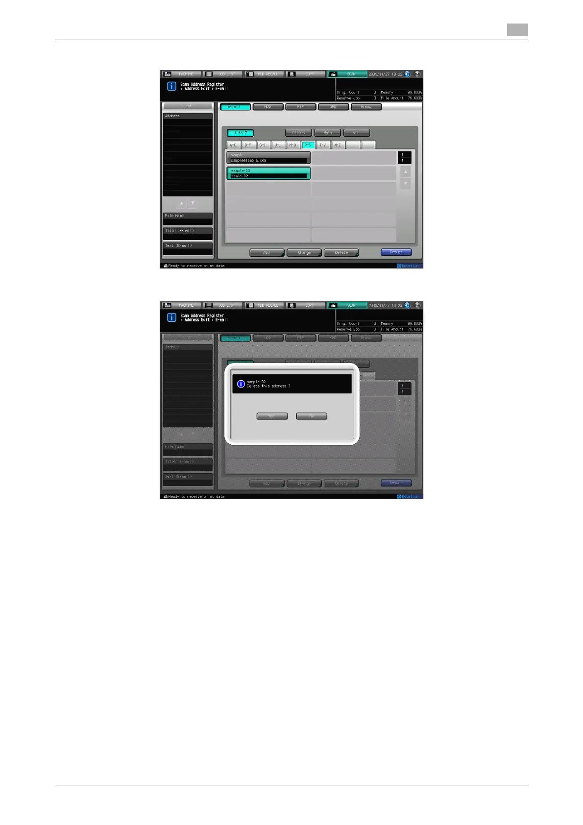 4 Select the address you want to delete and press [Delete].