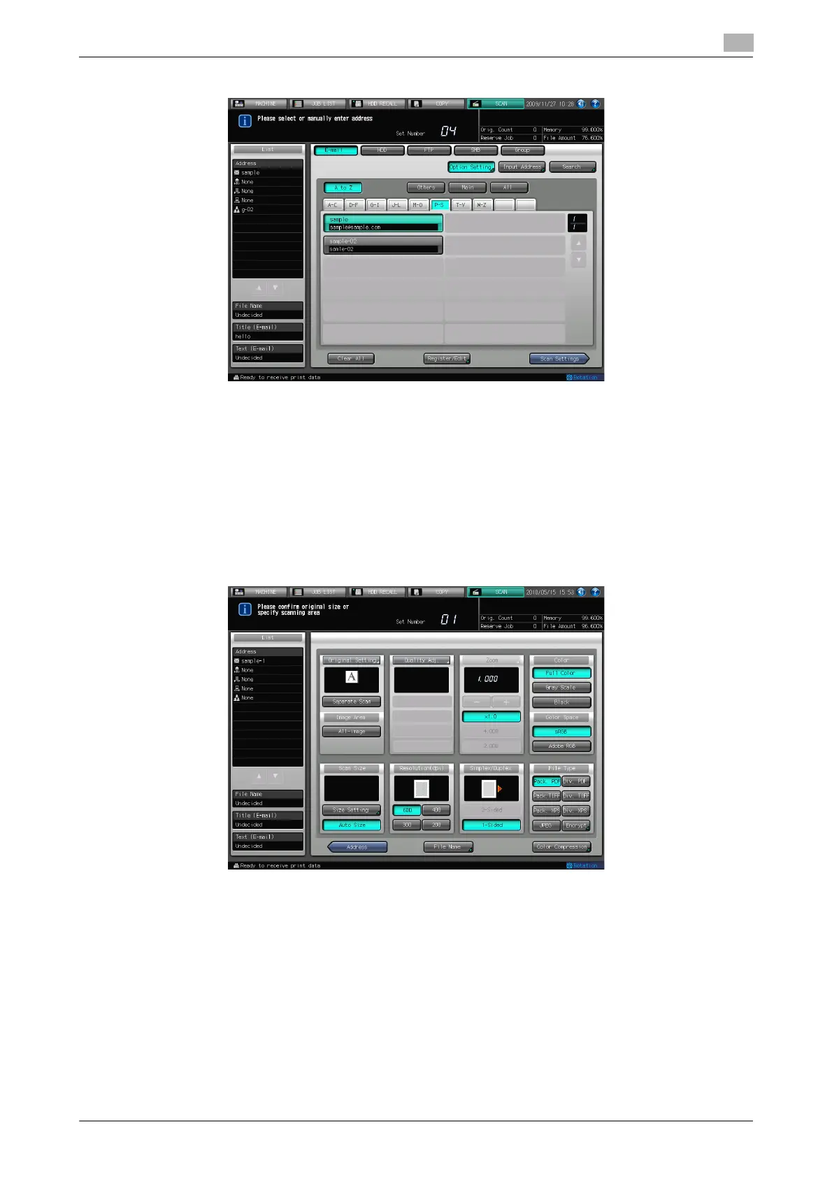 % The settings specified in the Scan Settings screen and address selected in the Select Addresses