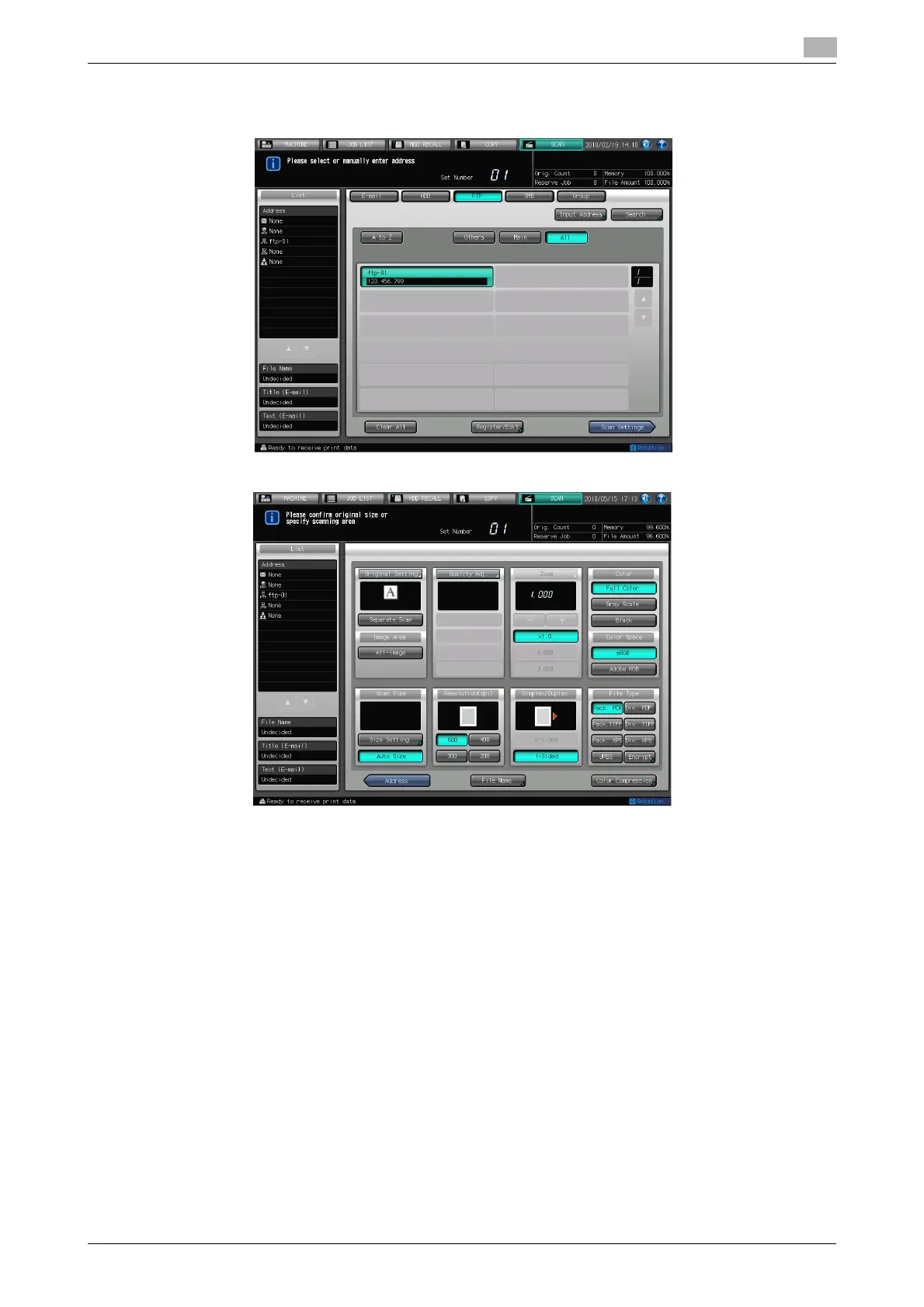 % The settings specified in the Scan Settings screen and address selected in the Select Addresses