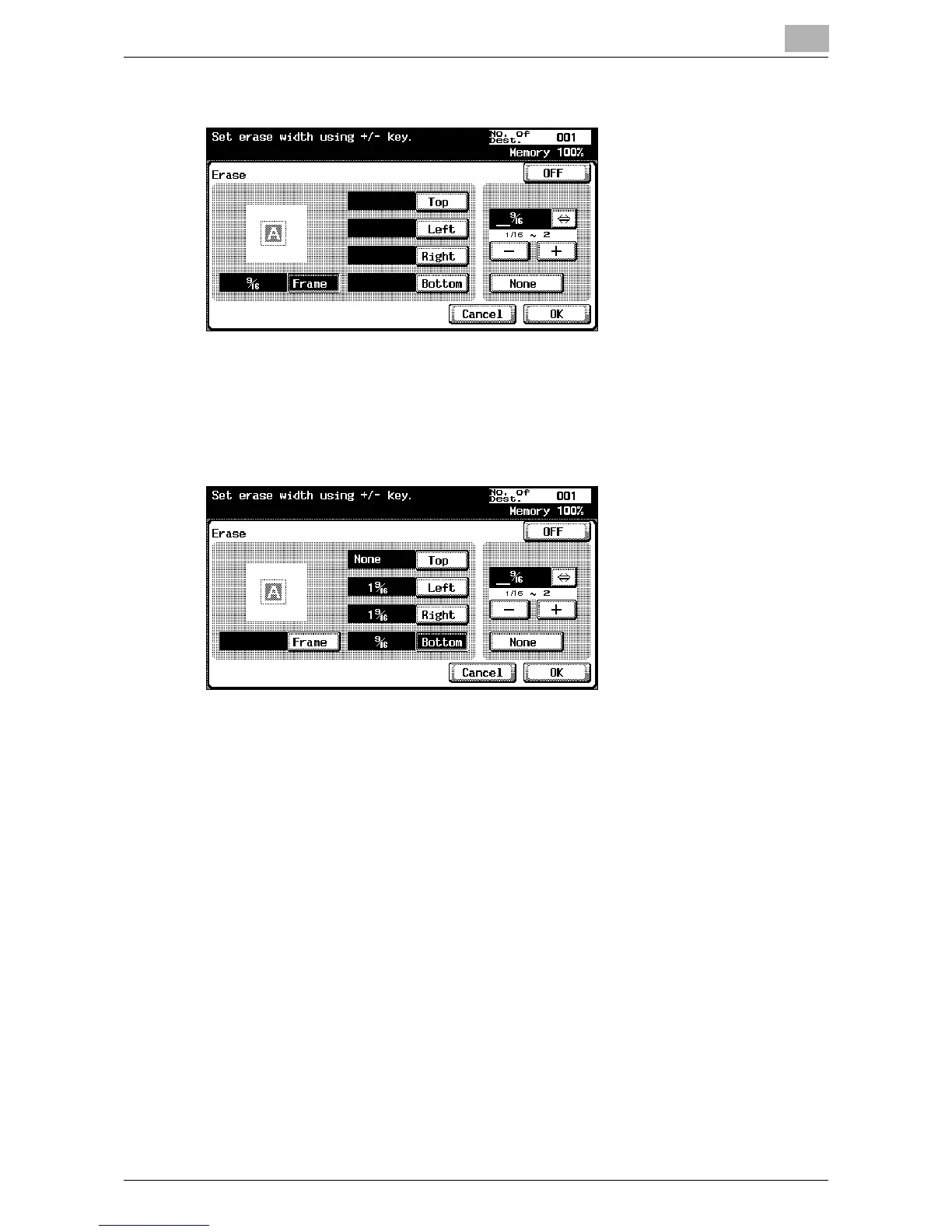 – To erase all sides with the same width, touch [Frame] and enter the