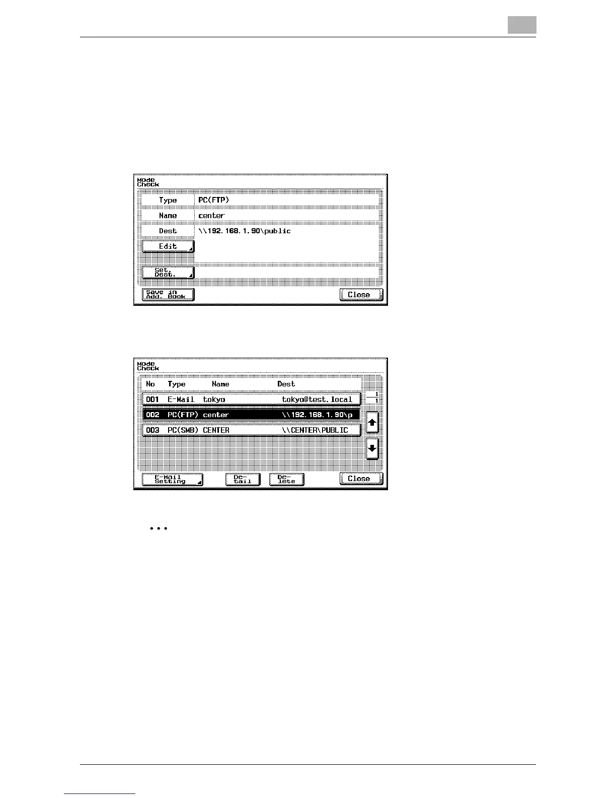 When the settings are changed, the destination whose settings have