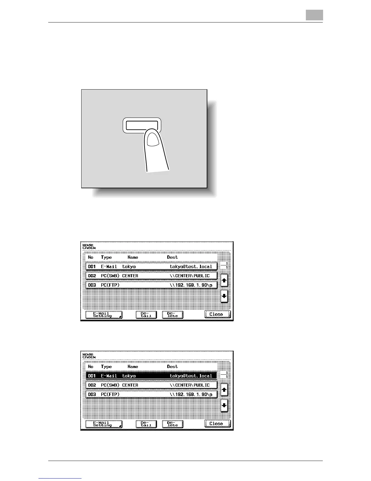 1 Press the [Mode Check] key in the control panel while the Scan mode