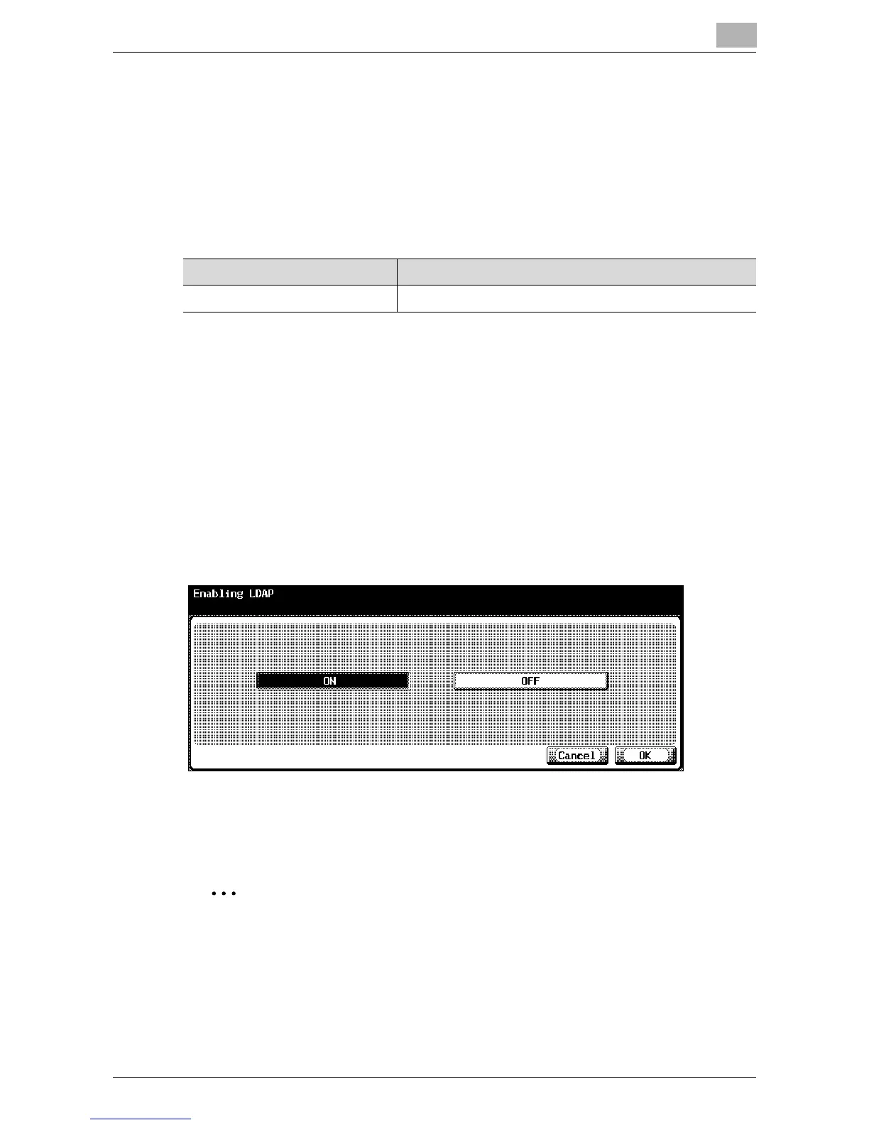 3 In the LDAP Setting screen, touch [1 Enabling LDAP].