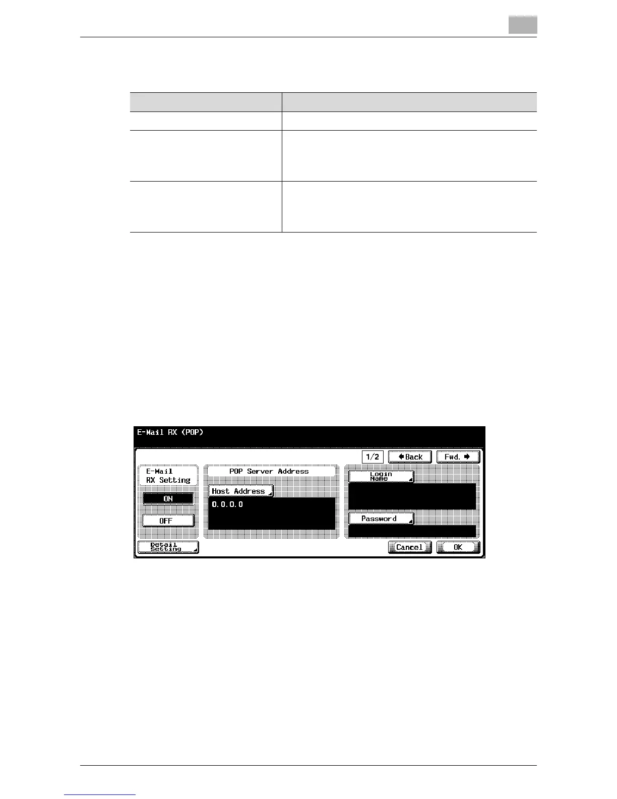 3 In the E-Mail Setting screen, touch [2 E-Mail RX (POP)].