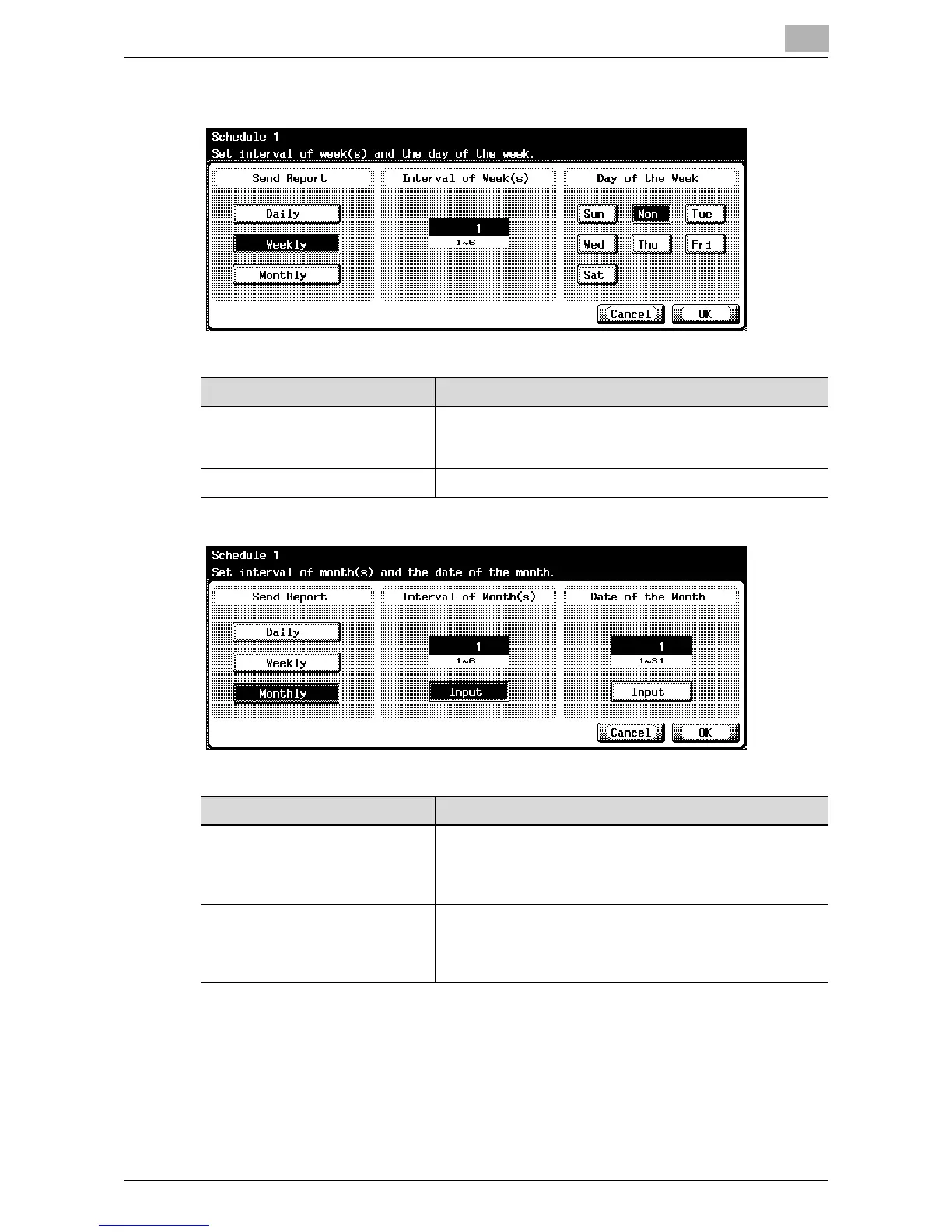 Interval of Week(s) Enter the interval of weeks for sending the schedule. To