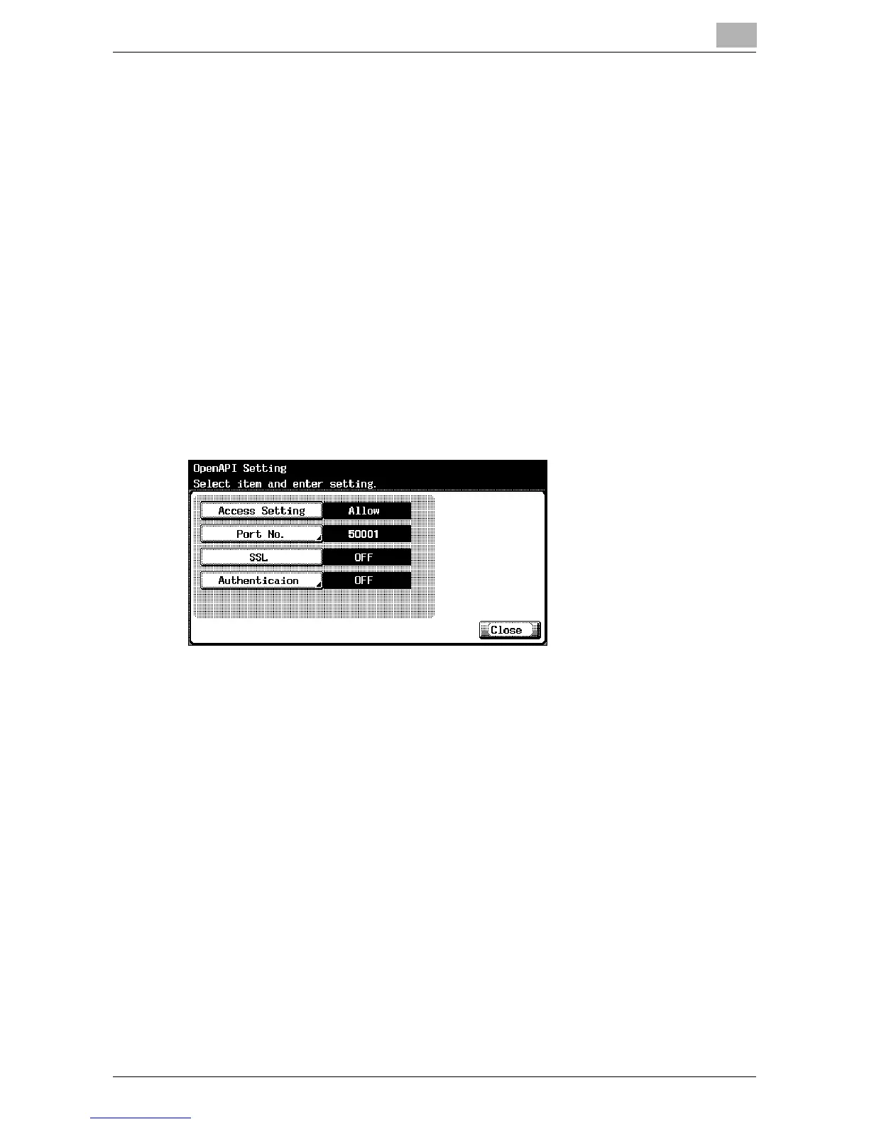 3 In the OpenAPI Setting screen, touch [Access Setting].