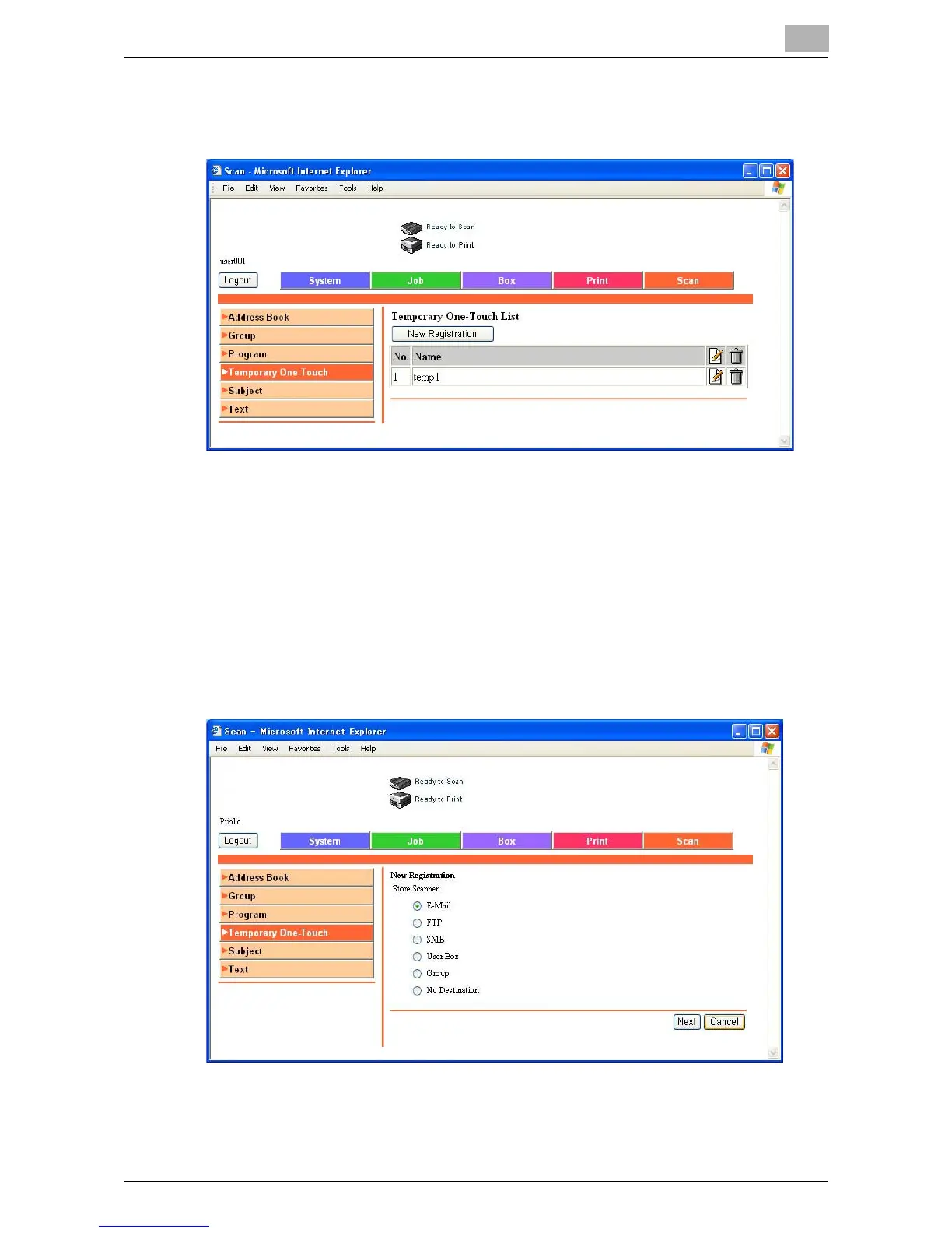 1 Click the Scan tab, and then click “Temporary One-Touch”.