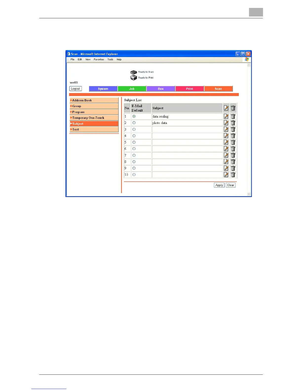 Up to 10 subjects that can be used when sending e-mail can be registered.