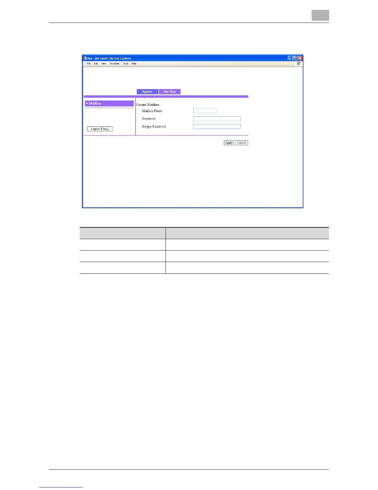 Mailbox Name Type in a user box name of a maximum of 12 characters.