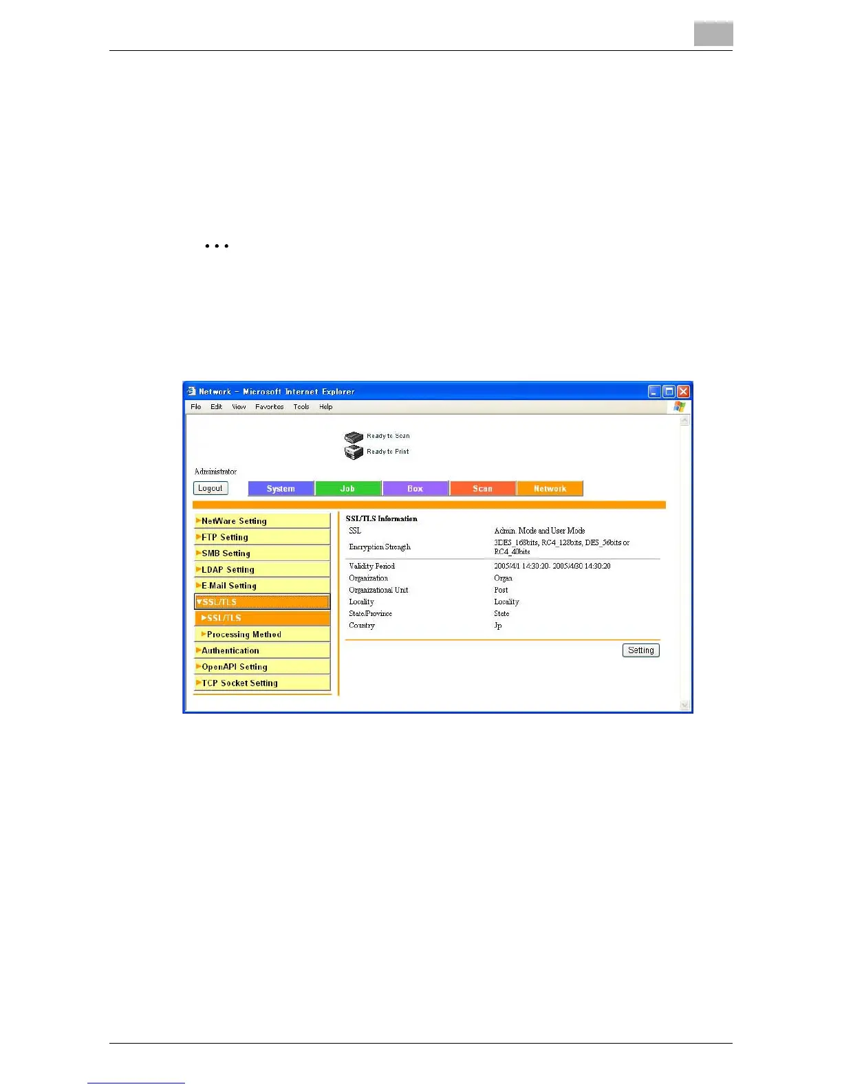 Specify SSL/TLS settings. When SSL/TLS is enabled, the communication