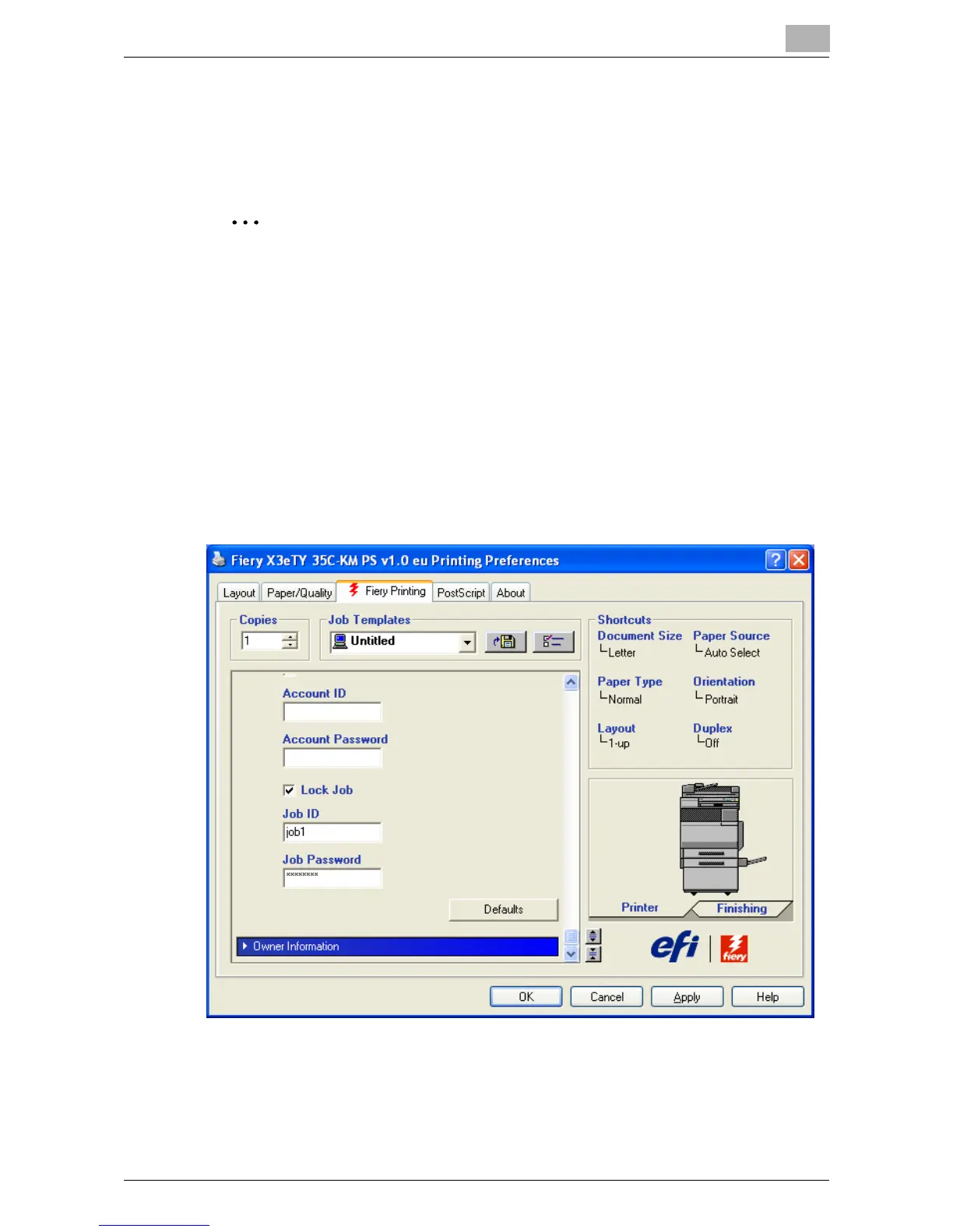 2 Click the Fiery Printing tab.