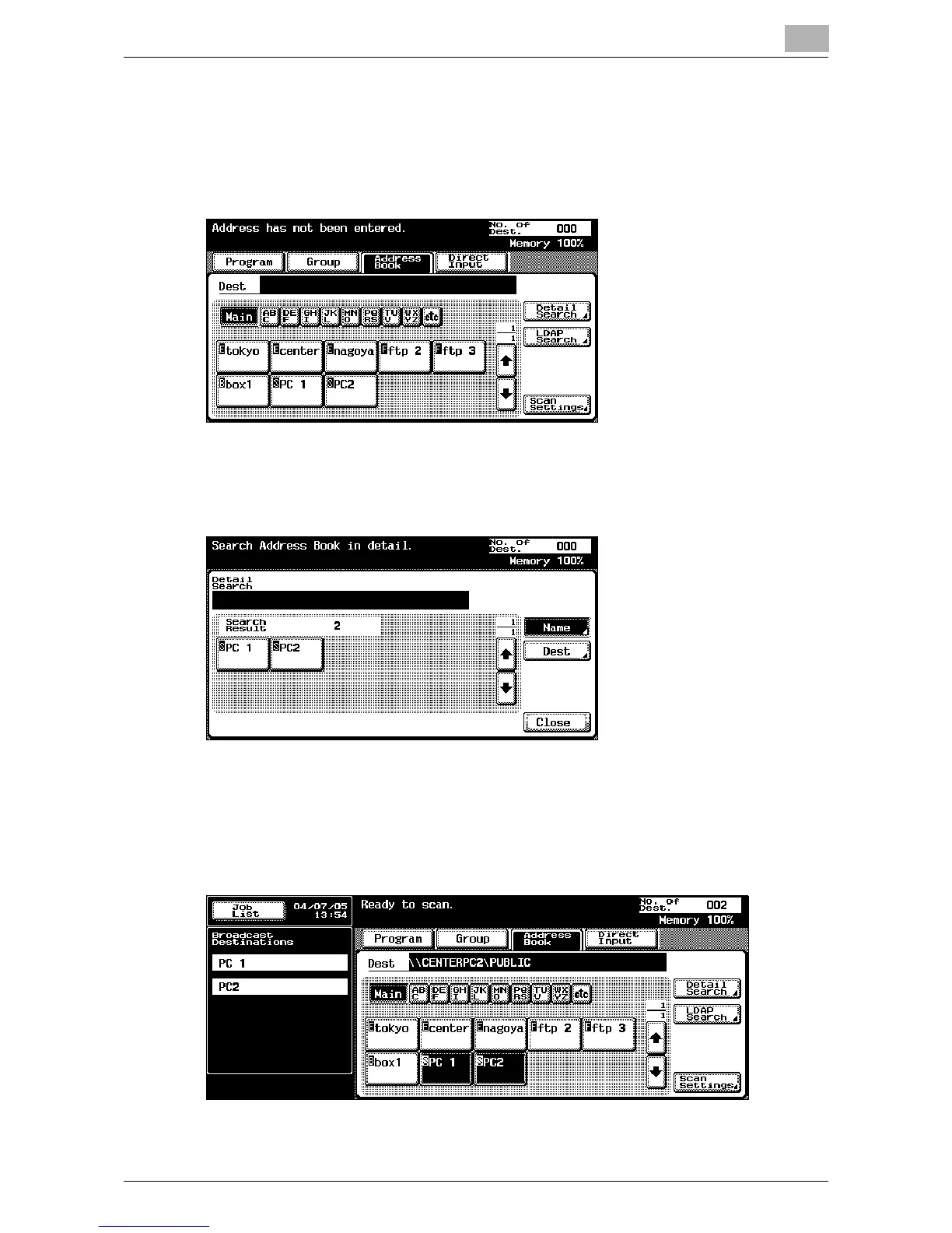 % Touch [Detail Search] to search for addresses. The address book