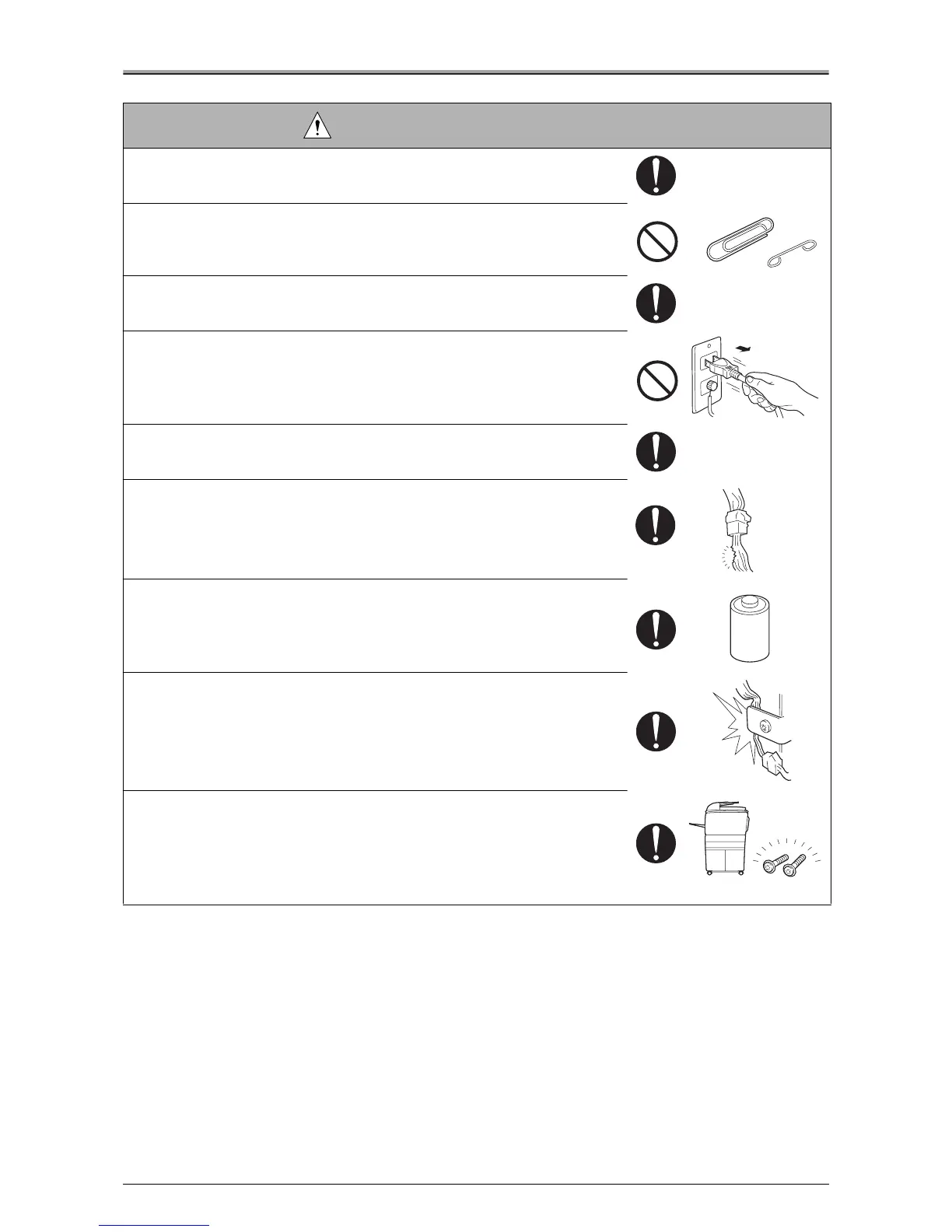 Do not allow any metal parts such as clips, staples, and screws to fall into