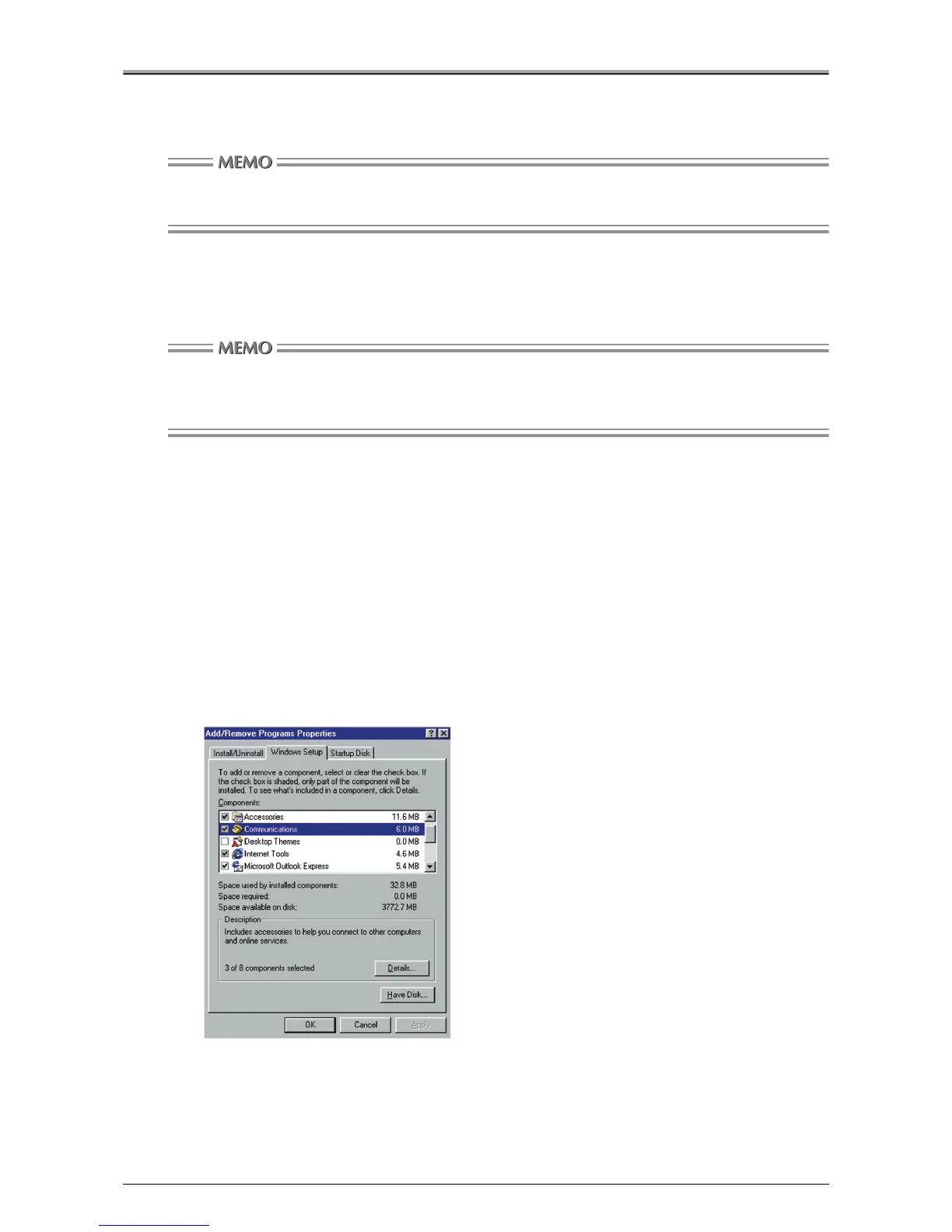 Click the [Windows Setup] tab, and check the [Communications] check box under