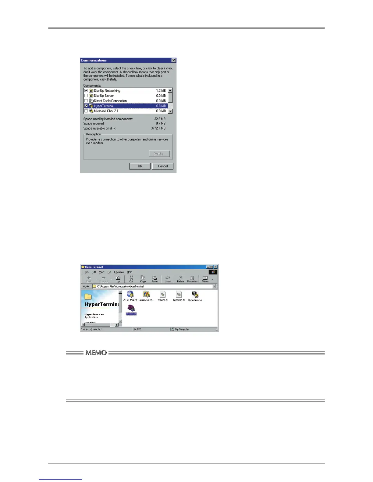Check the [HyperTerminal] check box, and click the [OK] button.