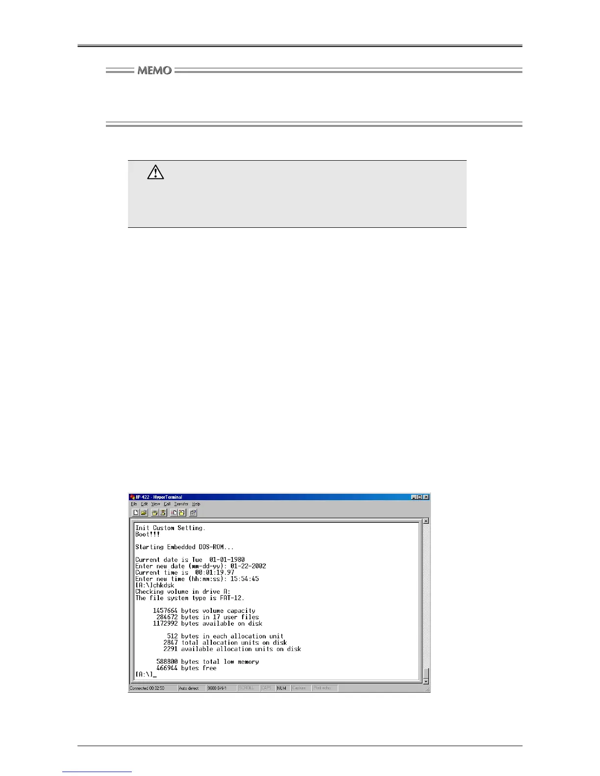 Enter "chkdsk d:" after the "A:\" prompt in the HyperTerminal window, and then press the Enter key.