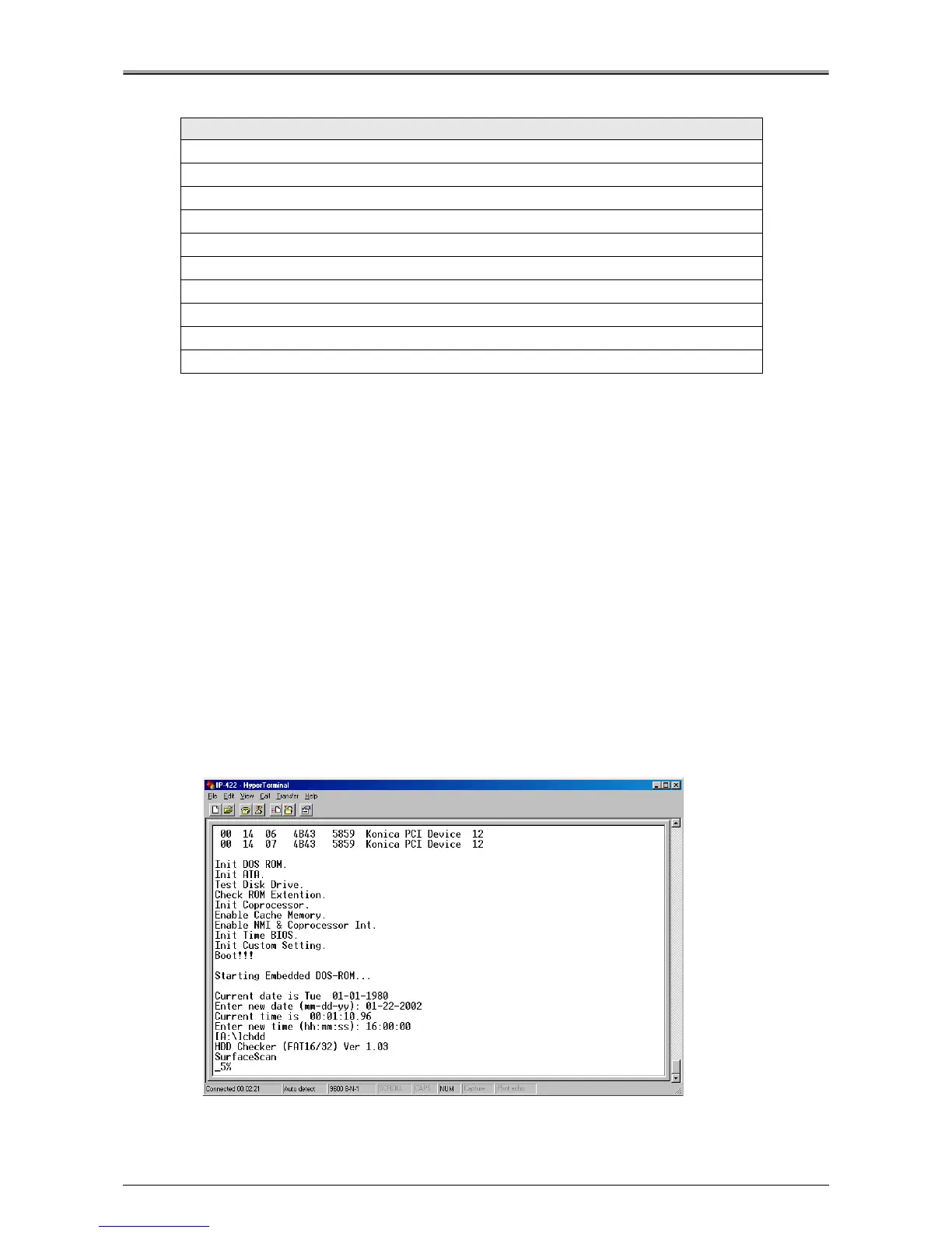 Enter "chdd" after the "A:\" prompt in the HyperTerminal window, and then press the Enter key.