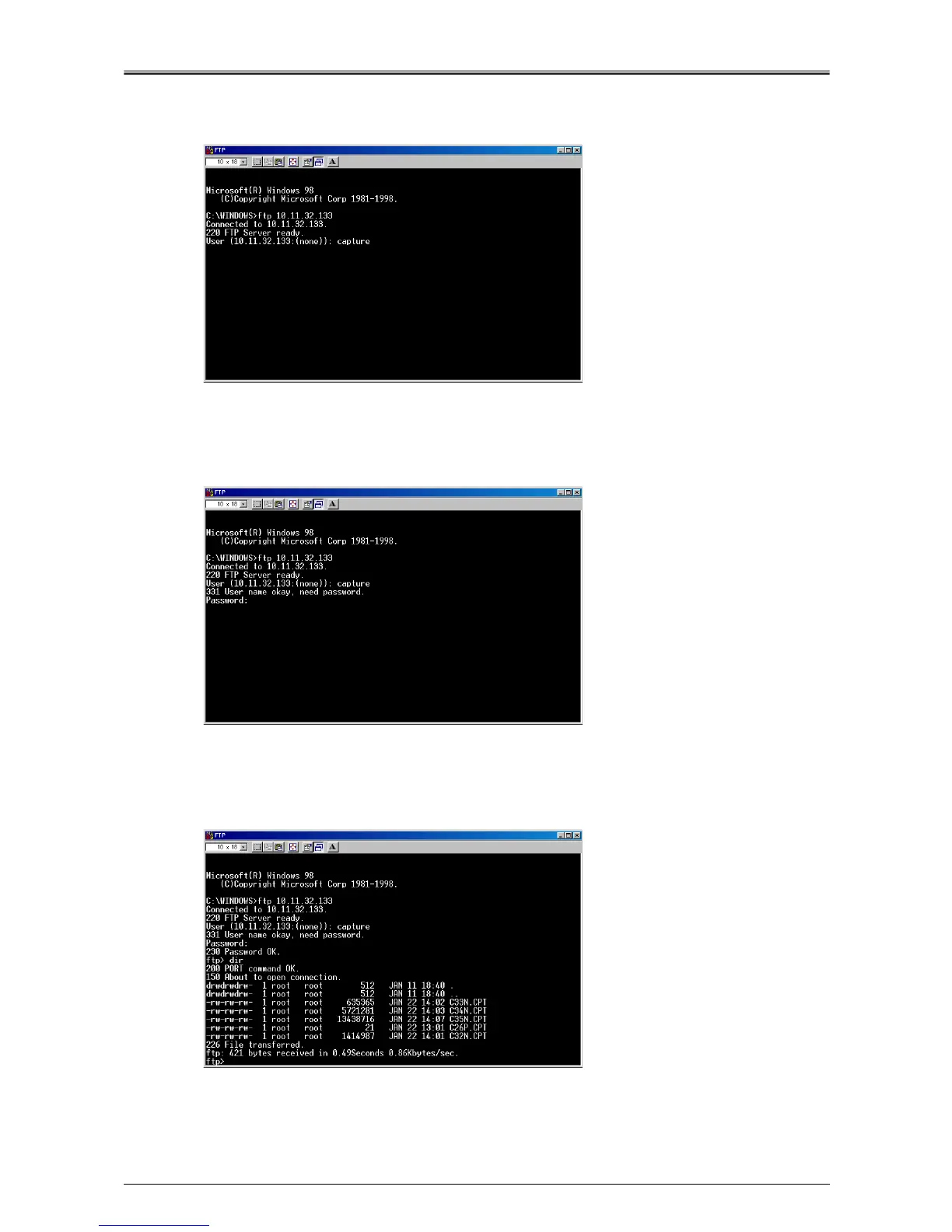Enter "capture" after the "User ID 10.11.32.133:(none):" prompt.