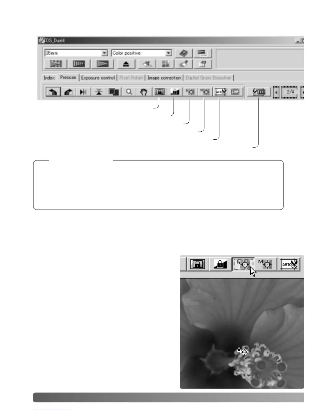 the scanner can be focused using point AF or manual focus.