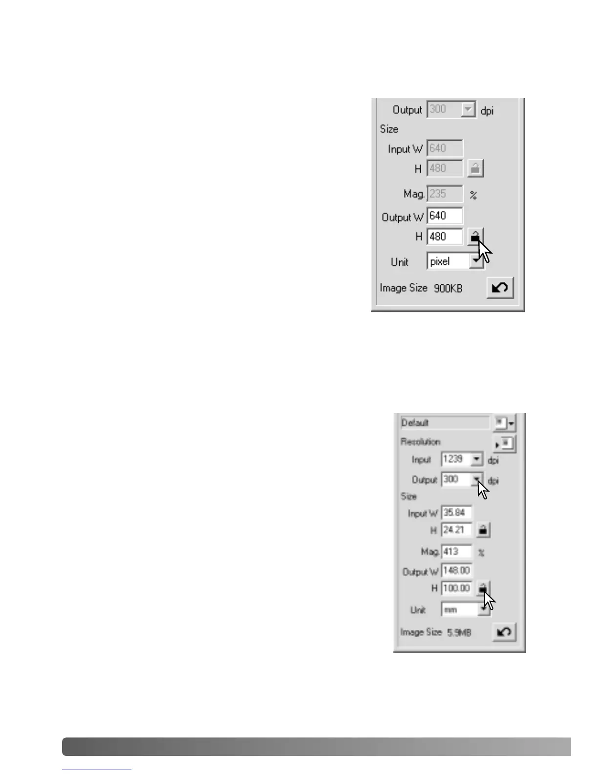 Example 1: setting the scanner output by pixels. This example creates an image with
