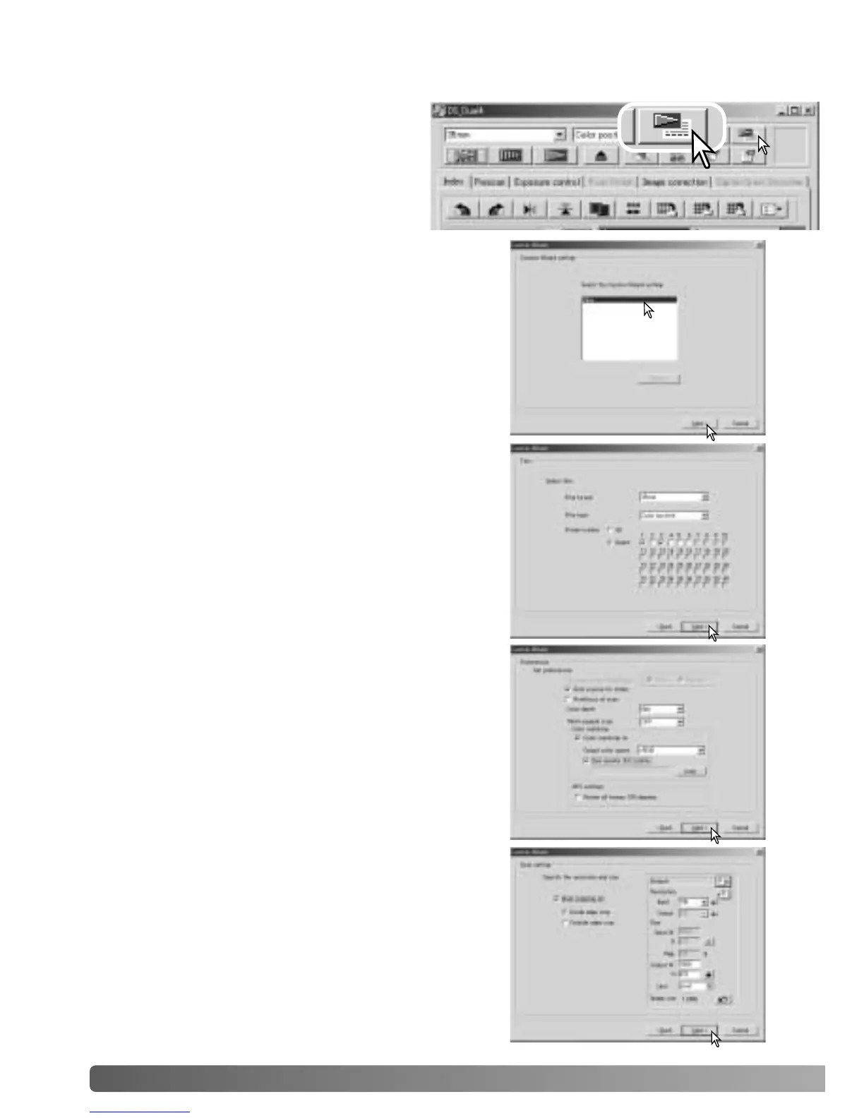 Set up the dialog box for the film and holder in use.