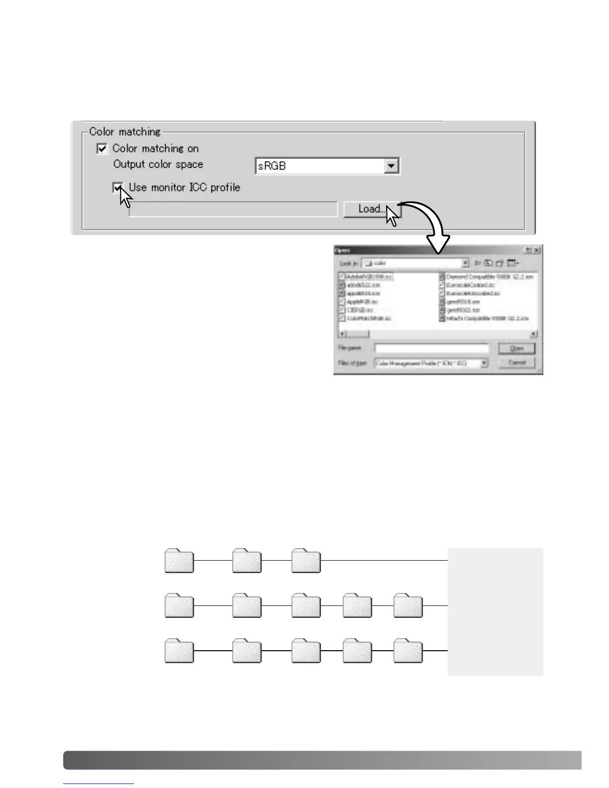 When installing the DiMAGE Scan Utility software, scanner color profiles will be