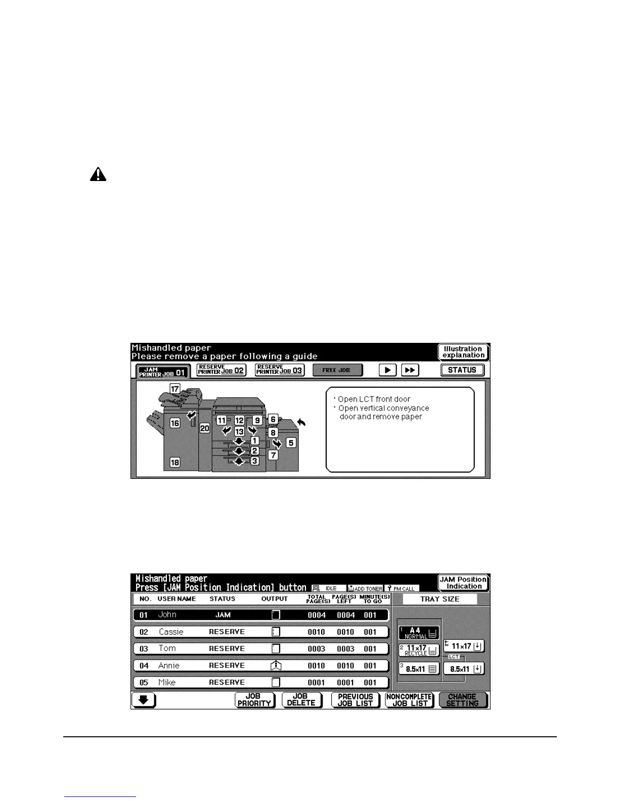 When the jammed job is highlighted on the list shown below, the JAM Position Indication