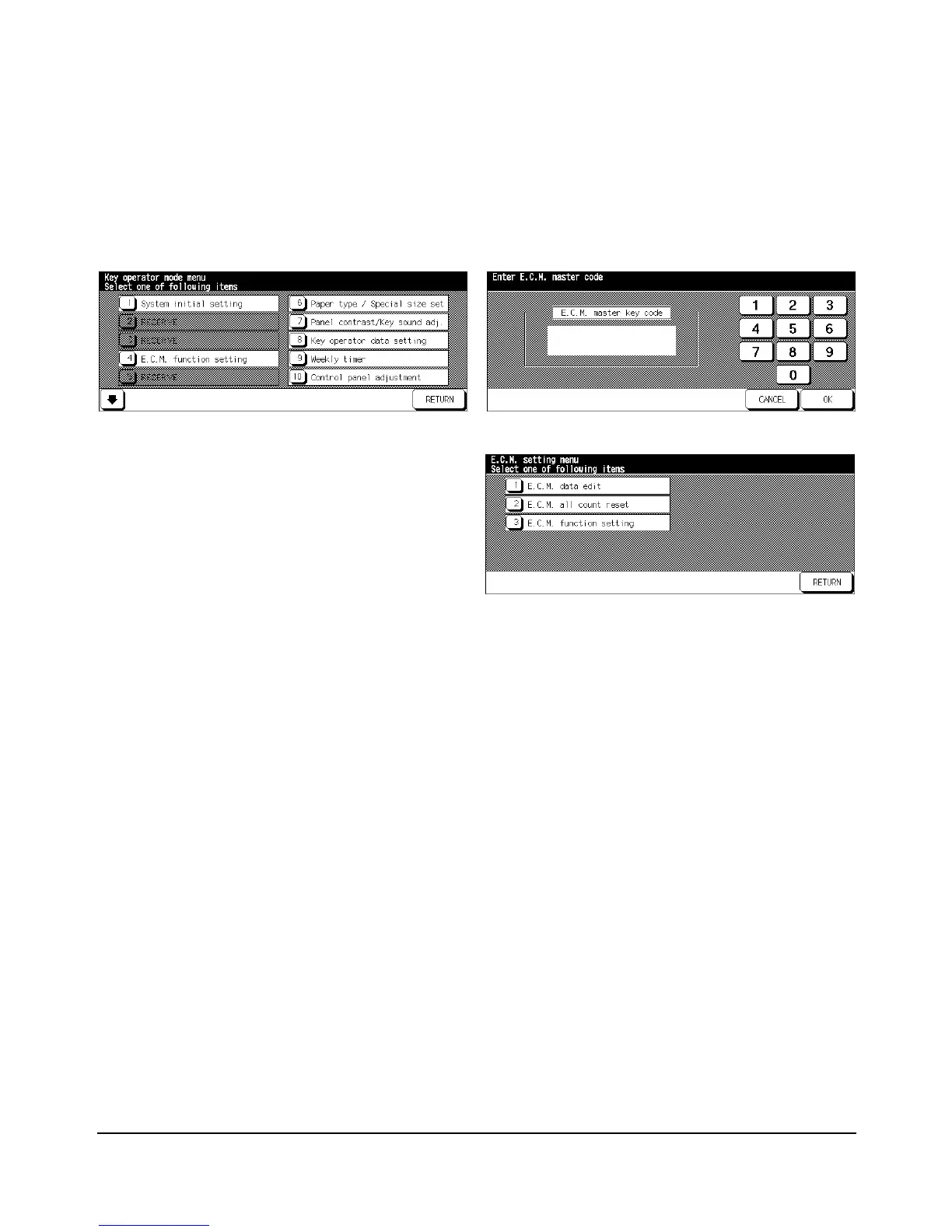 2Touch [4] E.C.M. function setting. The ECM Master Key Code Screen displays if a code
