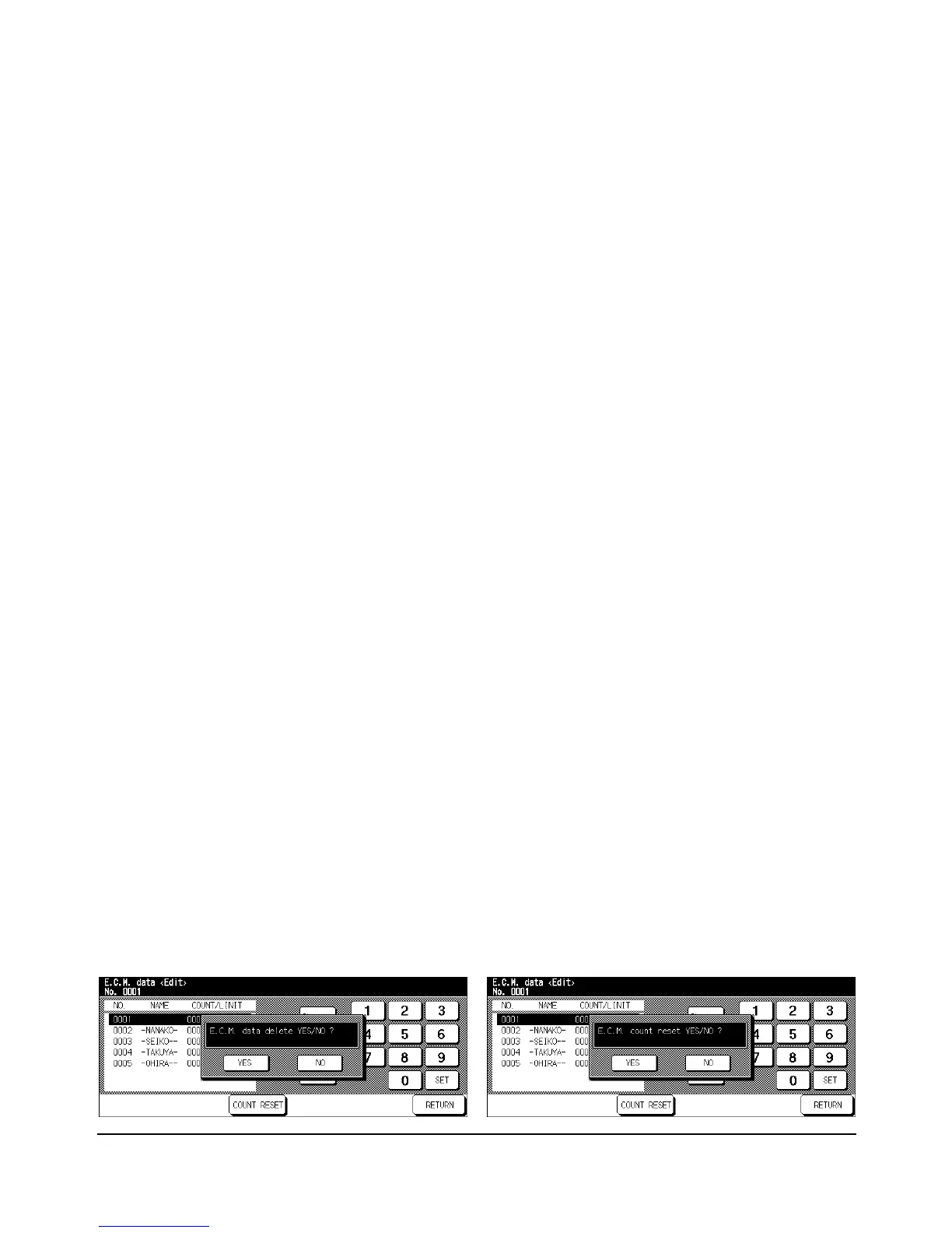 (2) Touch YES to clear the print count of the selected ECM data, or NO to cancel.