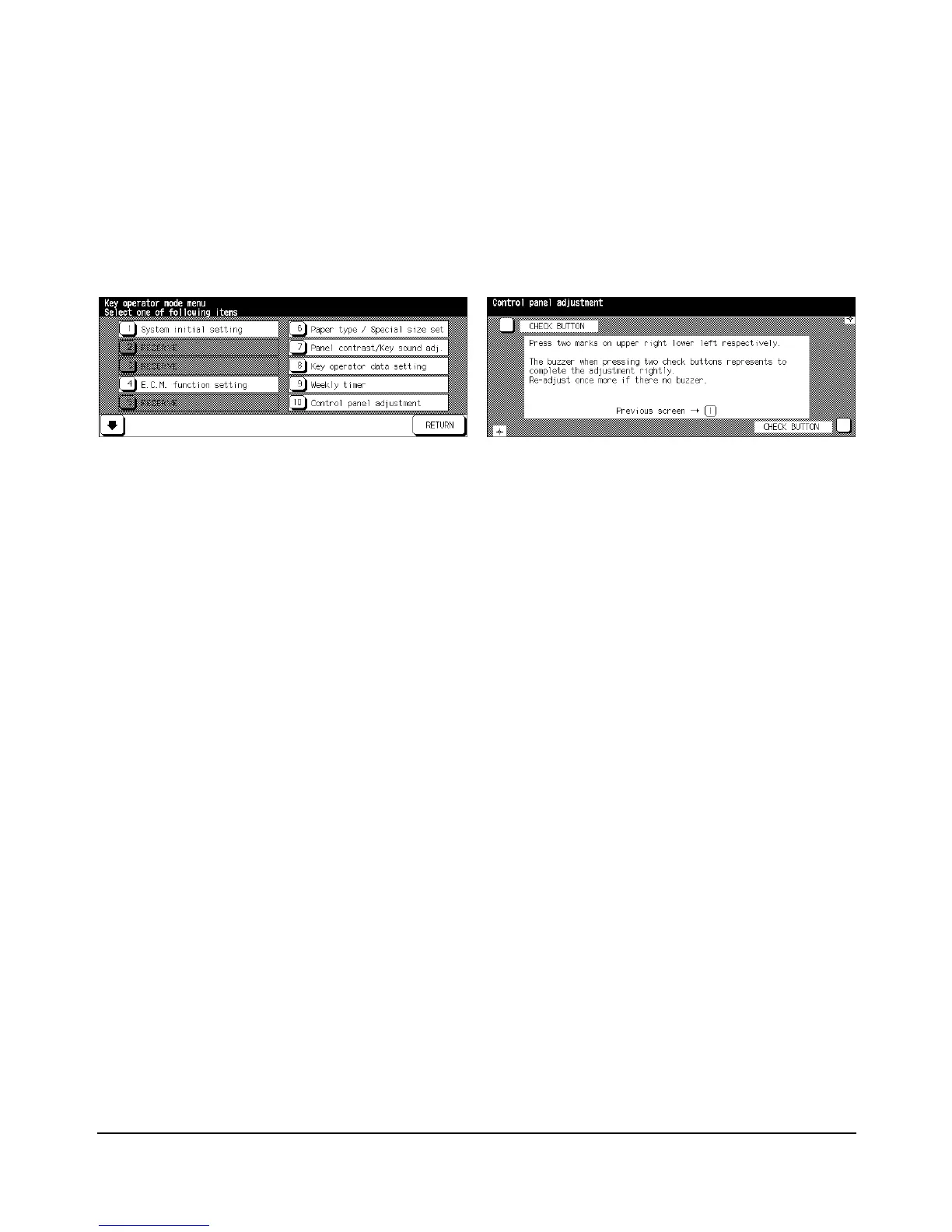 Key Operator Mode Screen Control Panel Adjustment Screen
