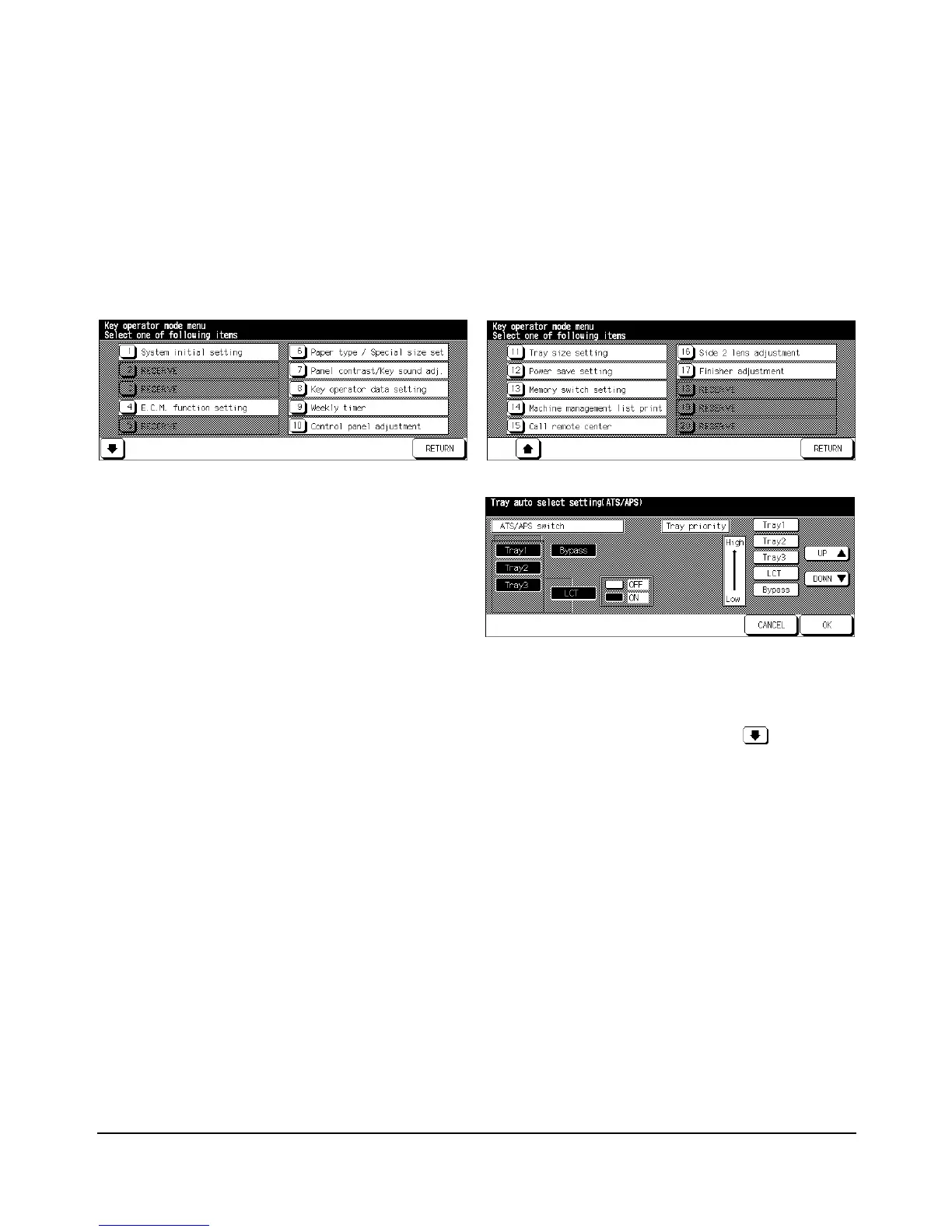 To display menus [11] to [20] of the Key Operator Mode Screen, touch the Lower