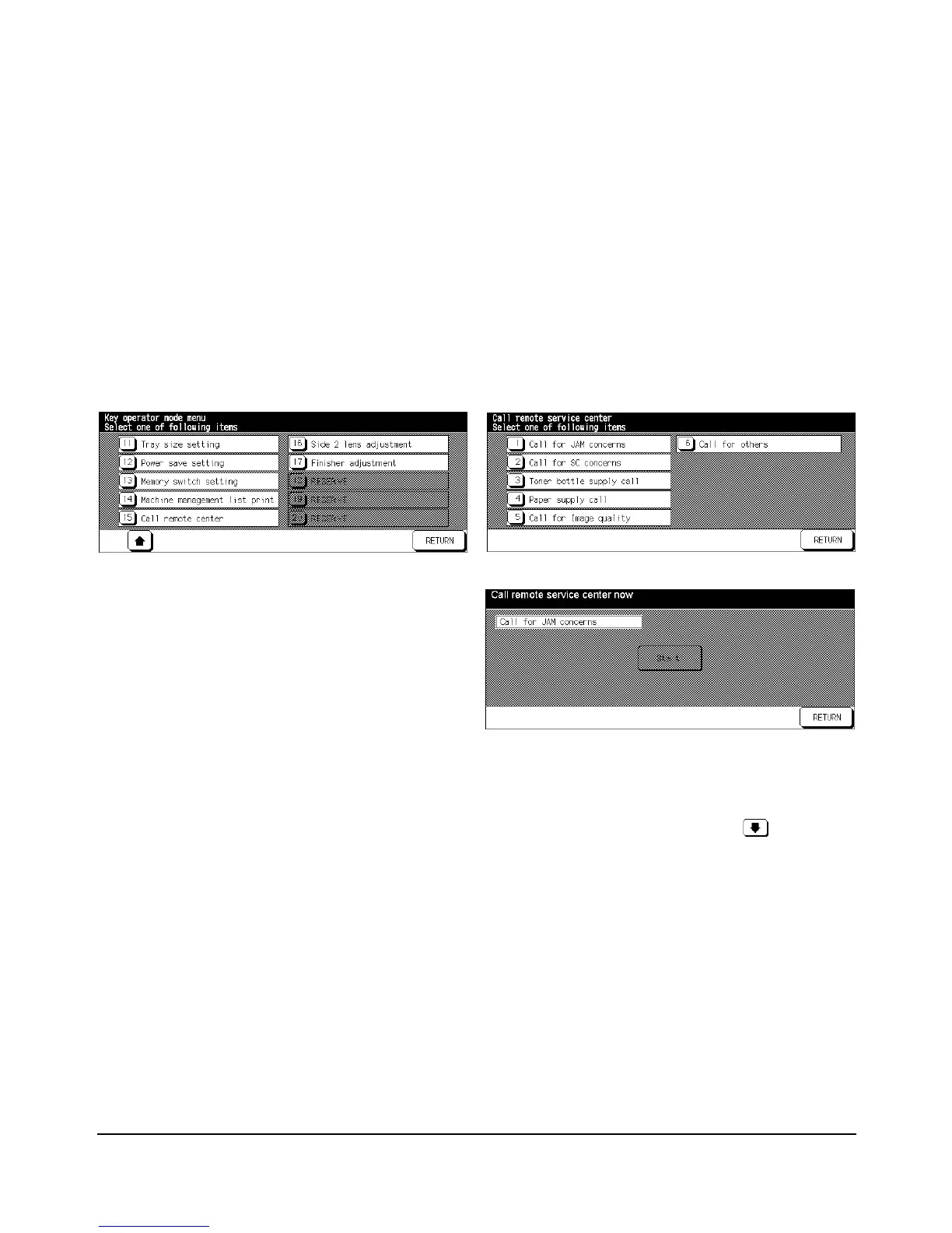 Key Operator Mode Screen 2 Call Remote Service Center Screen