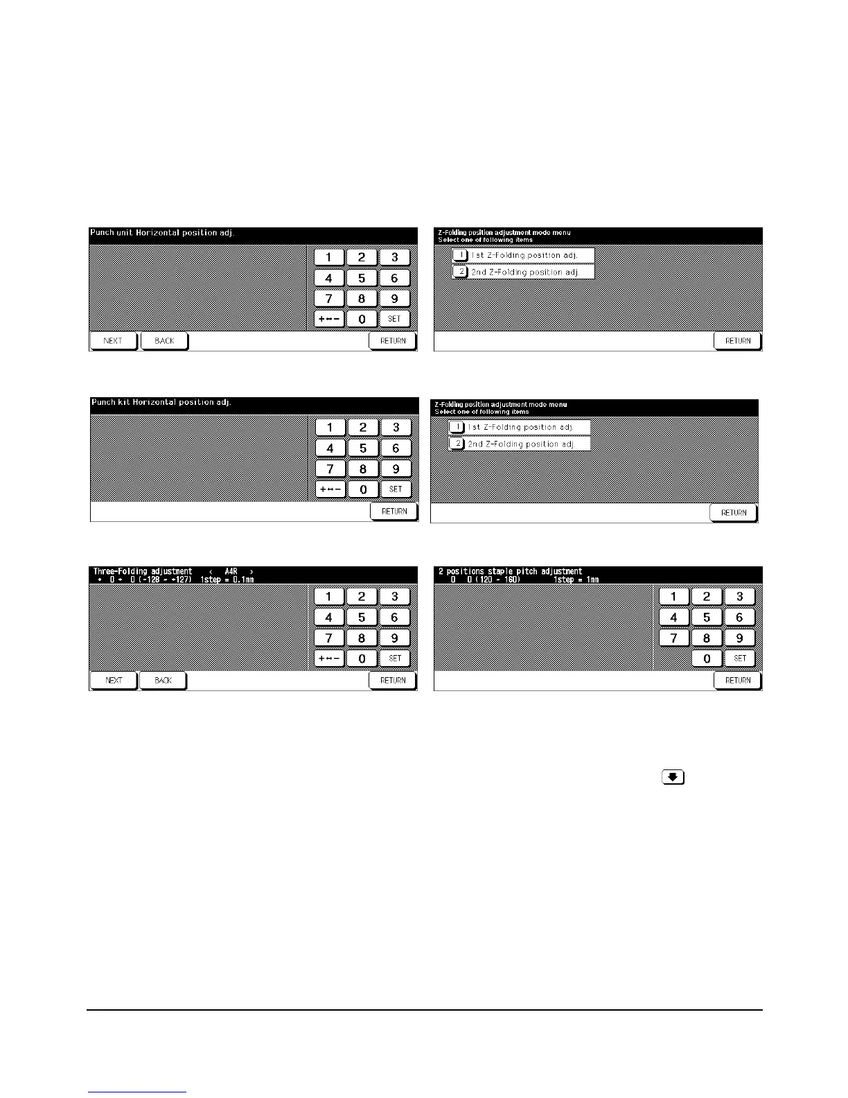 Punch Unit Vertical Position Adjustment Screen Z-Folding Position Adjustment Menu Screen