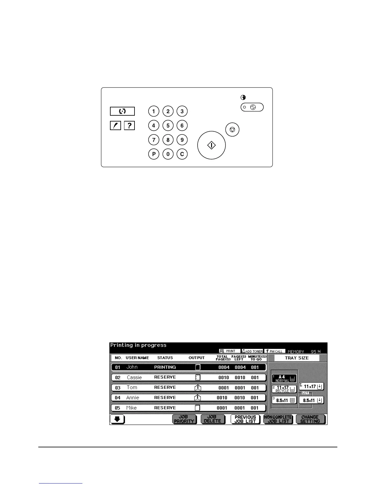 such as, [WAITING], [INITIAL], [PRINT], [ERROR], and [IDLE].