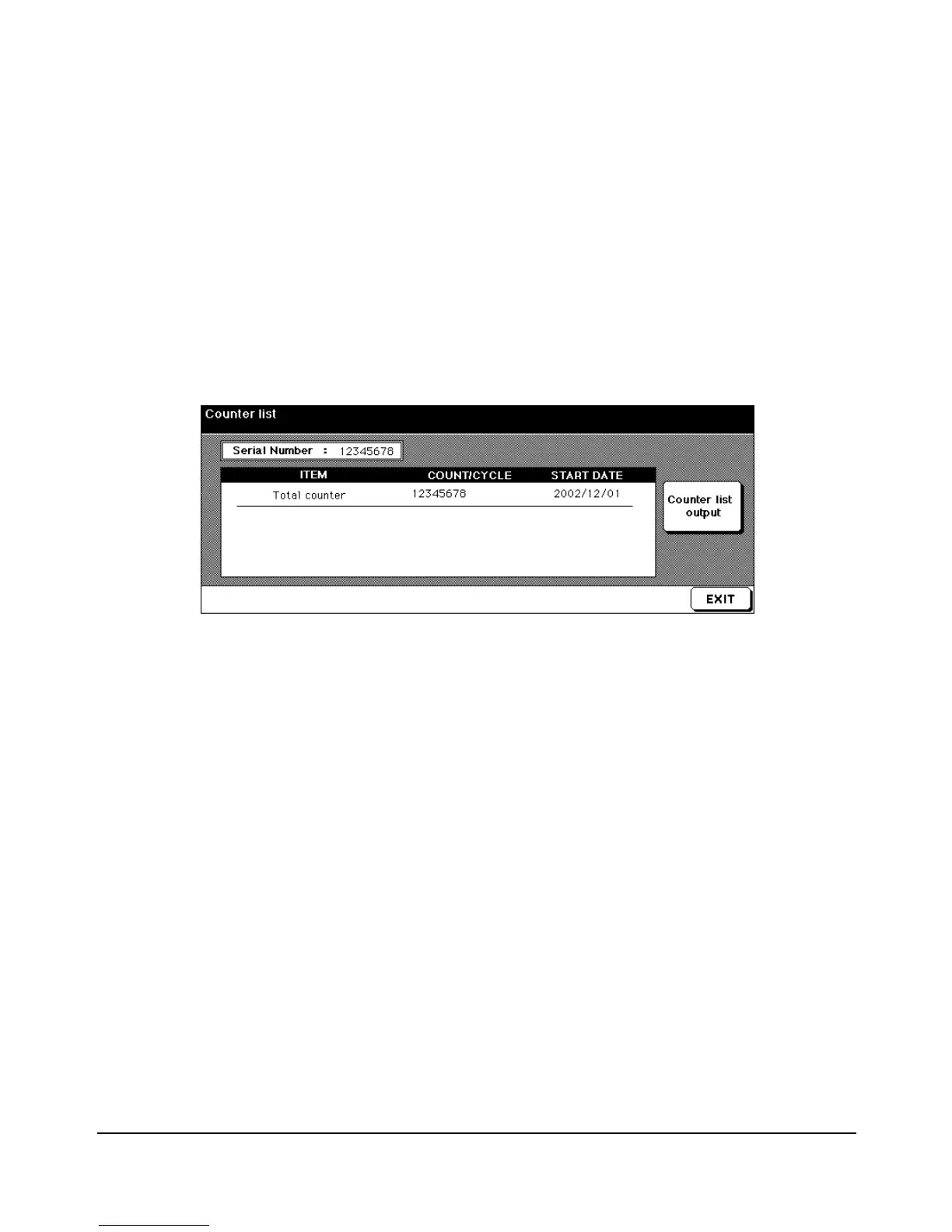 2 After viewing the Counter List, touch EXIT to return to the Basic Screen.