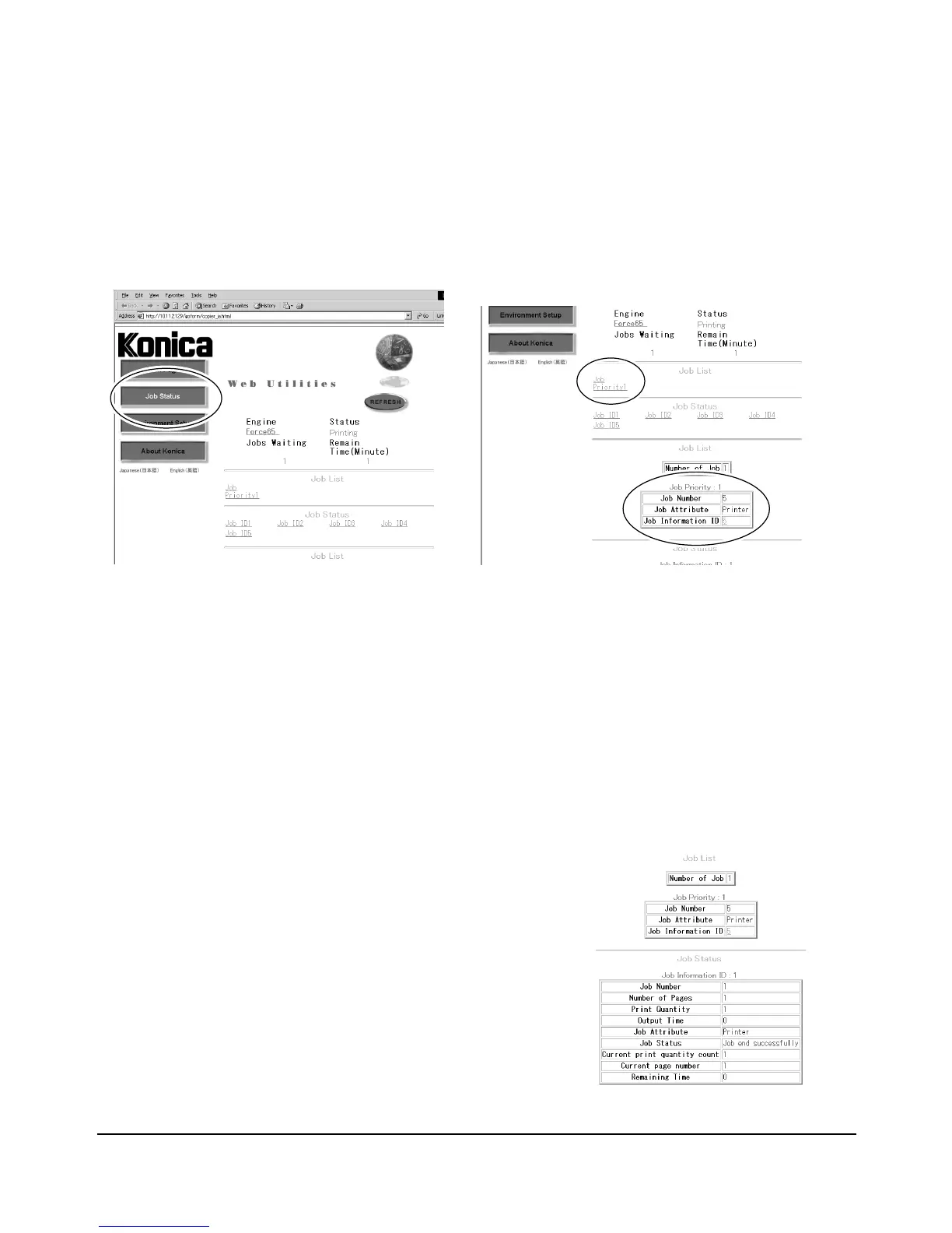 NOTE: If no print job or reserved job exists, “Job Empty” will be displayed in the first “Job List” area.