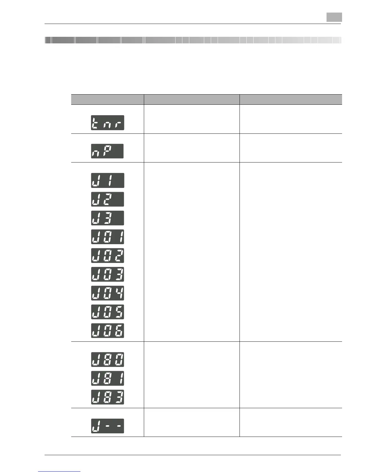 Error Display Possible Cause Action