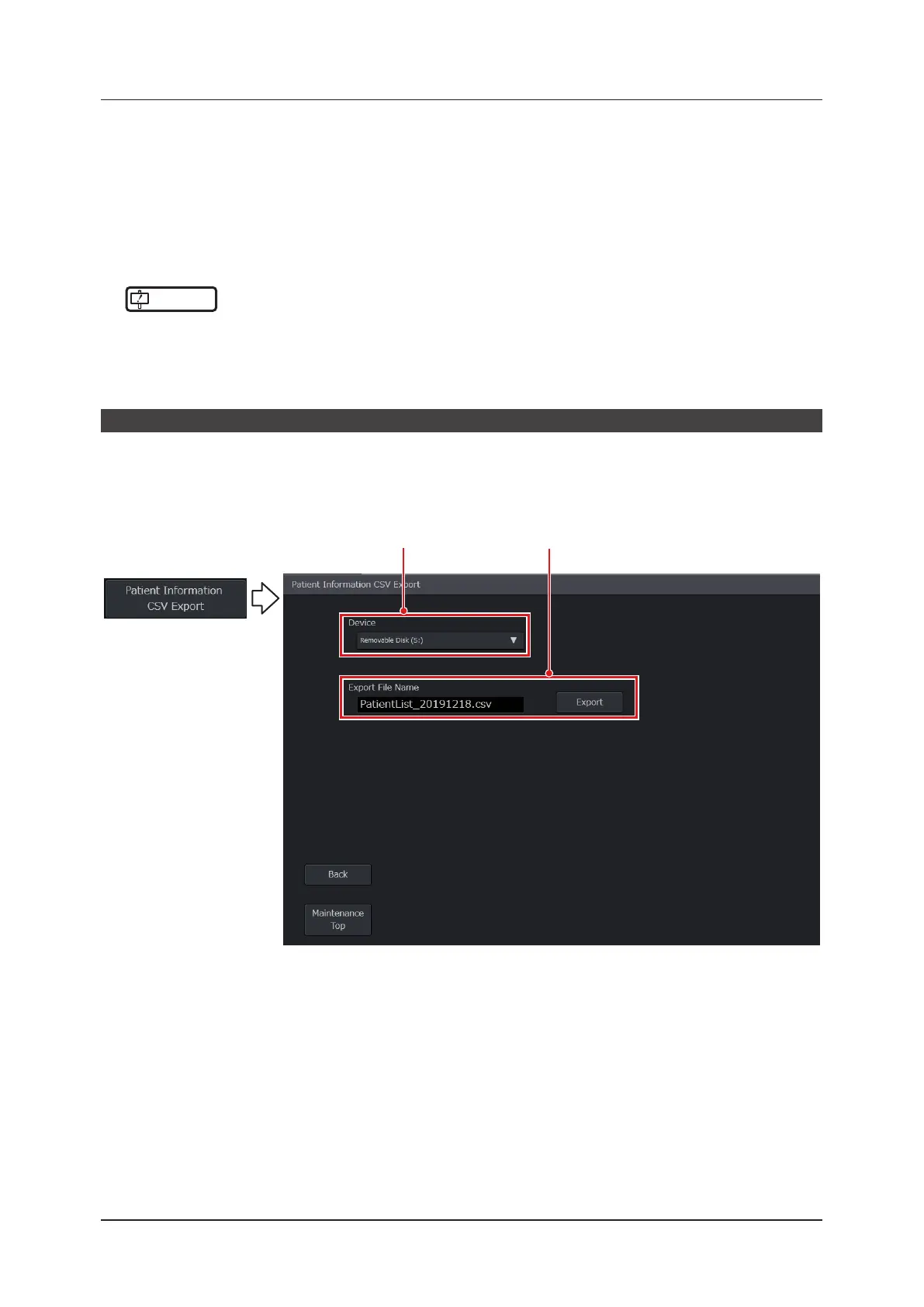 Press the [Patient Information CSV Export] button on the [Backup / Restore] screen.