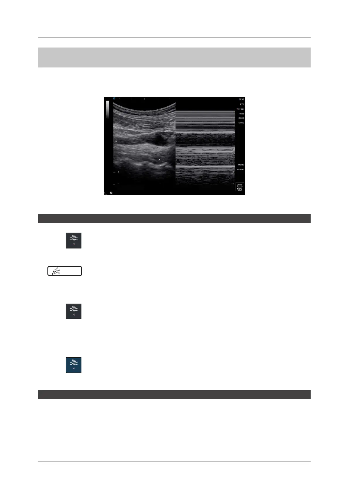 In M-mode the B image area is specied using the M cursor, which displays a change over time.