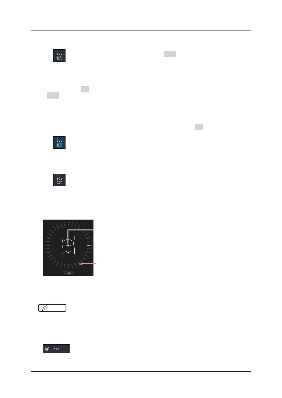 • The Body Mark icon in the information display area is hidden and the Body Mark image is conrmed.