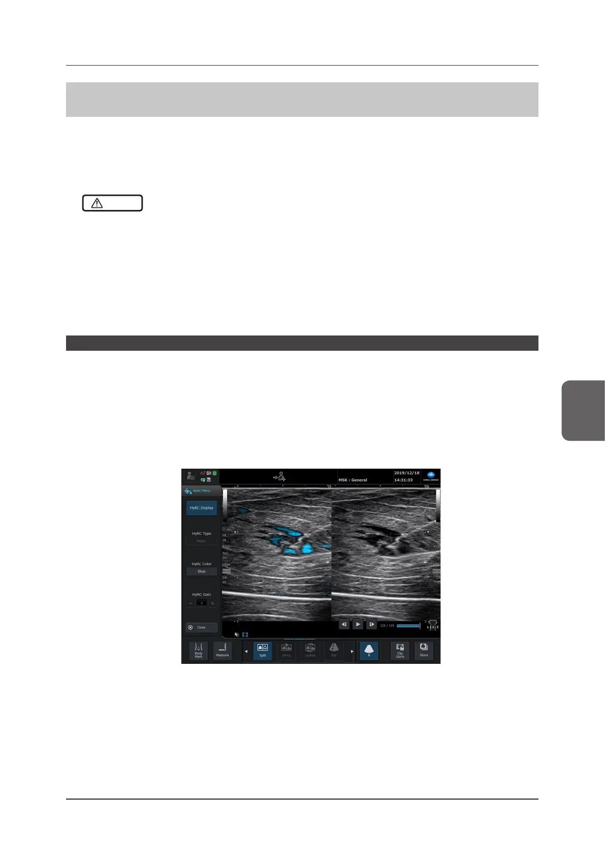 – The hypoechoic region may not be colored, depending on the HyRC gain settings and the HyRC type settings.
