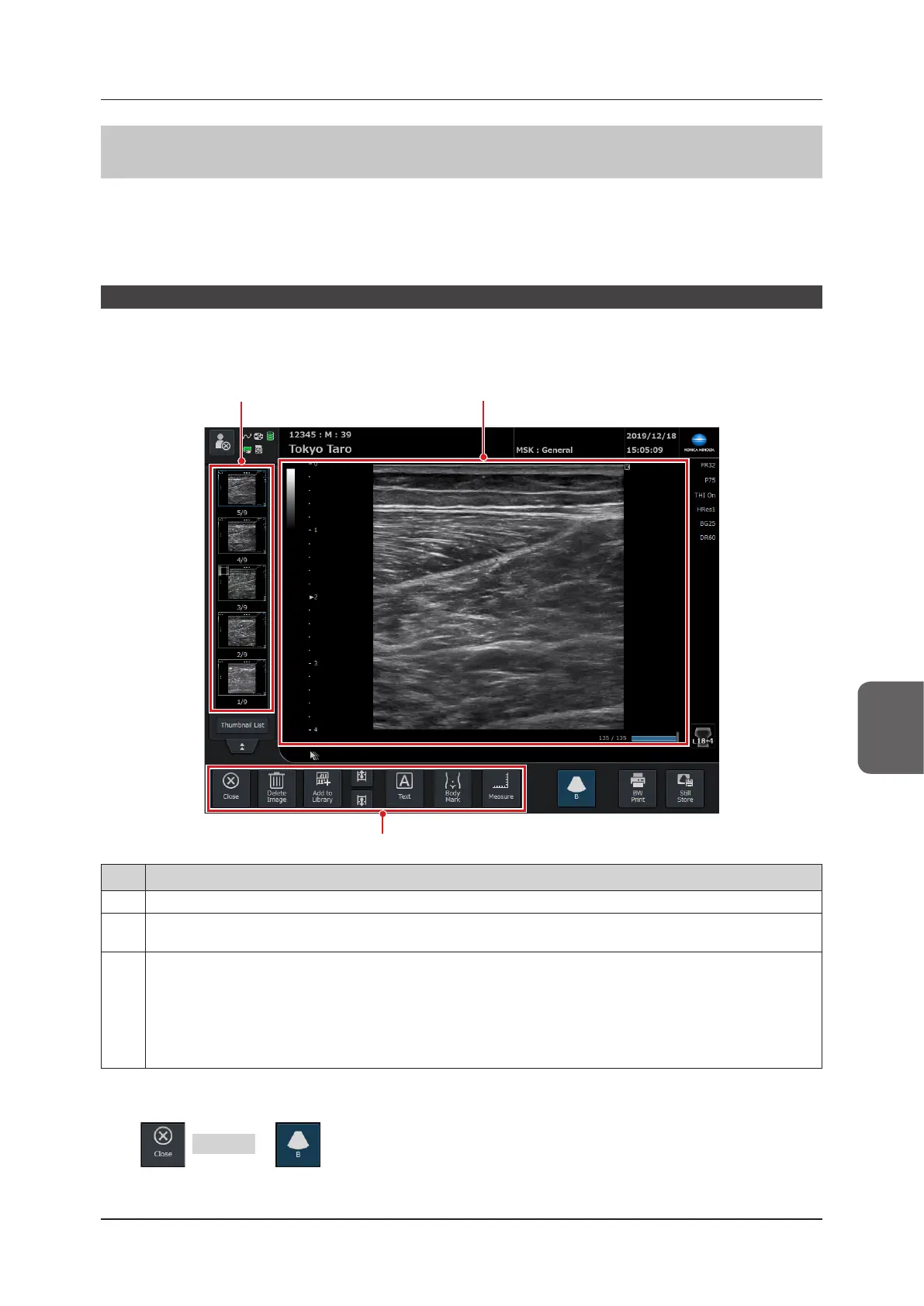 • For still images, each of the [Text] / [Body Mark] / [Measure] buttons can be used to modify already-stored past im-
