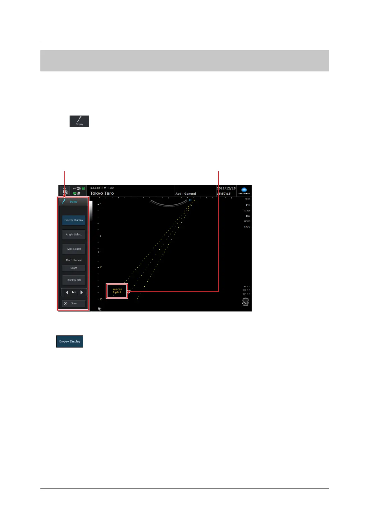 • A message appears, conrming the guide display type and an insertion route of the biopsy needle.