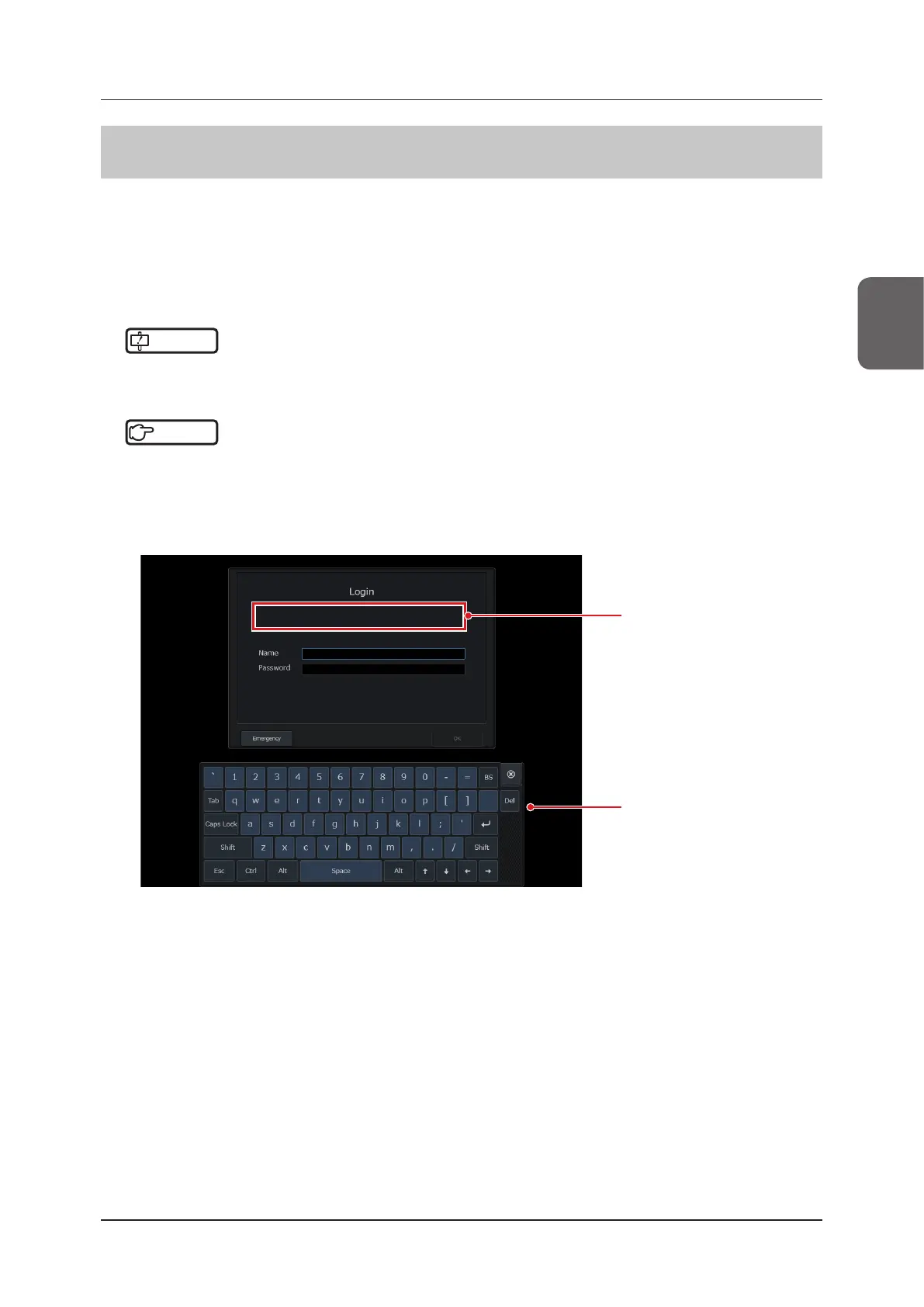 • You cannot perform any operations other than Login or Shutdown during the [Login] screen display.