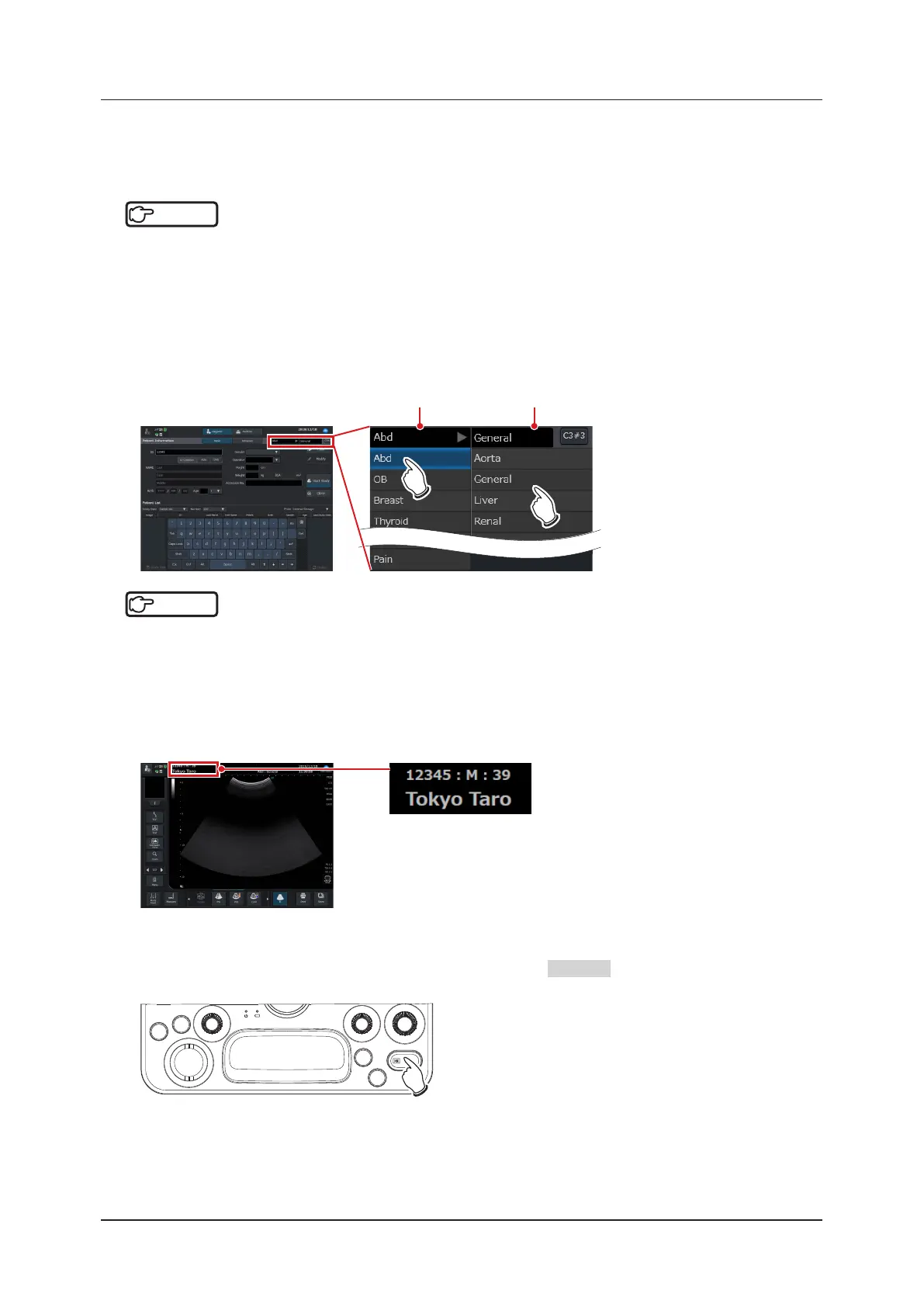 • Press the [Start Study] button on the [Patient] screen to start an examination.