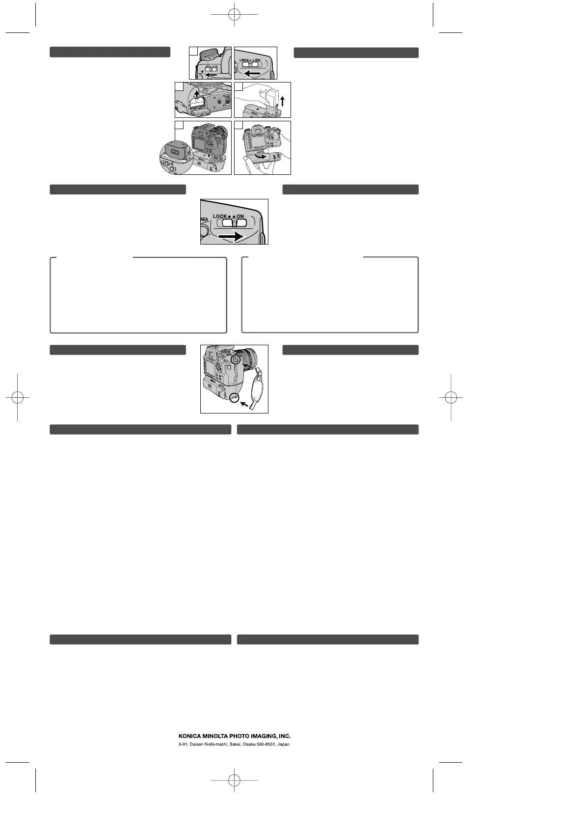 • Do not disassemble. Take your vertical control grip to a Konica Minolta Service Facility when
