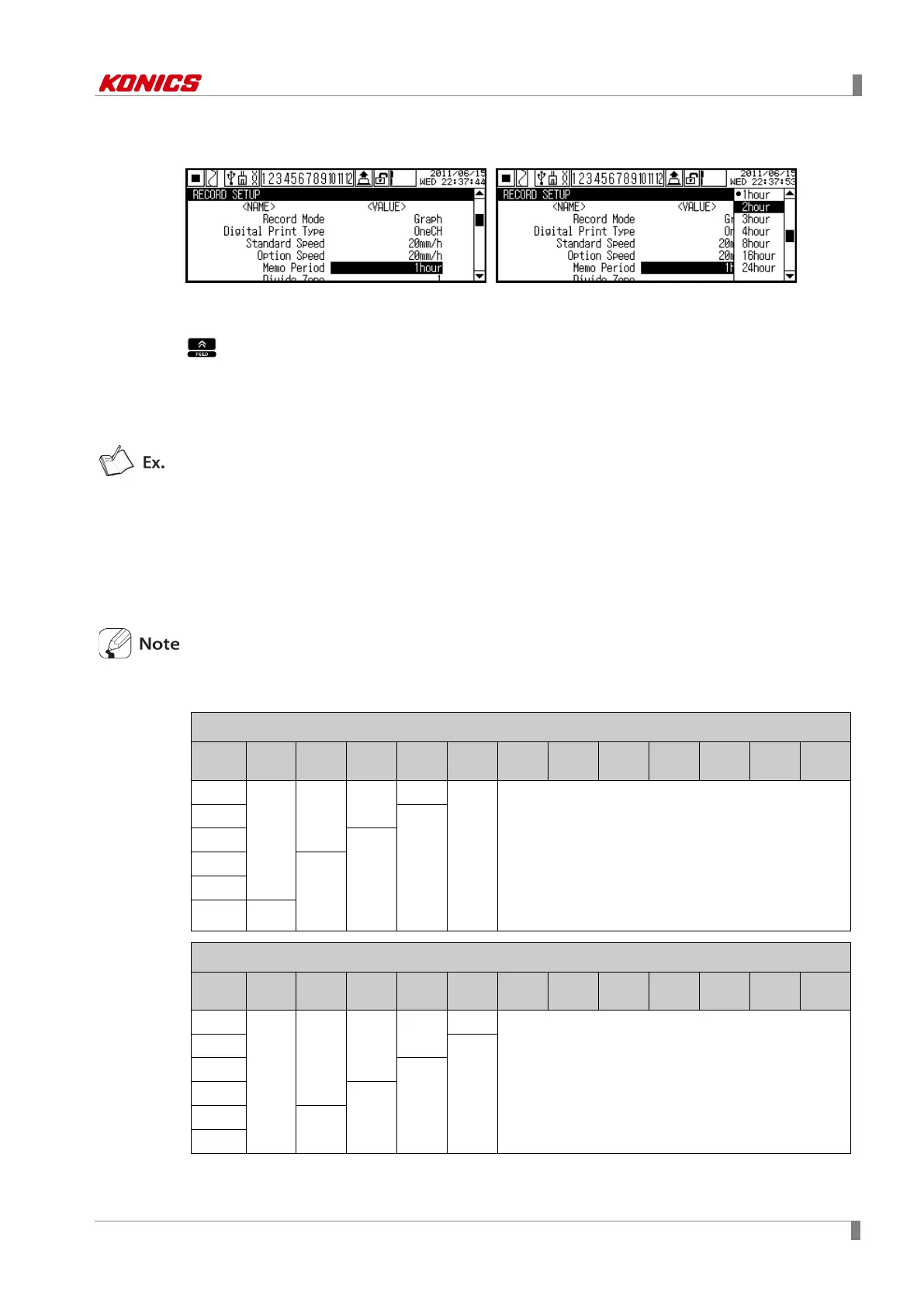 Depending on record speed and the number of record channels, memo period setting time is