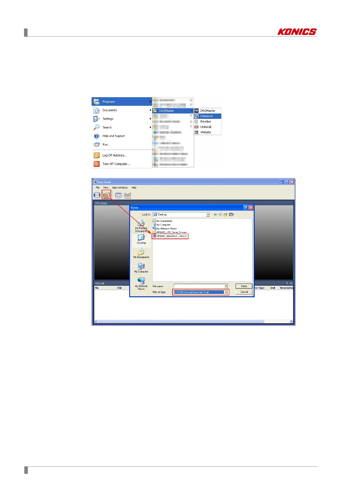1st Execute Data Anal. At taskbar, click [Start]-[Program]-[DAQMaster]-[DataAnal] or at