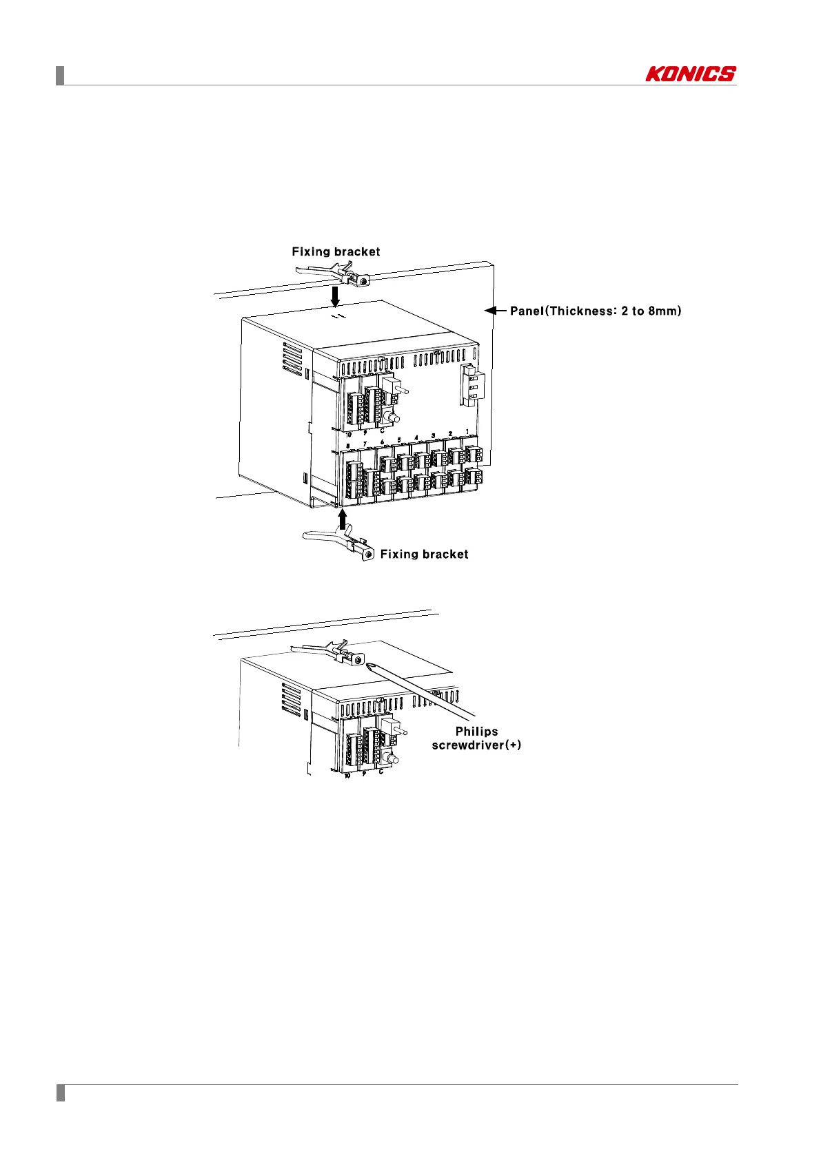 2nd Tighten fixing brackets on upper/lower parts to fix on the panel with phillips